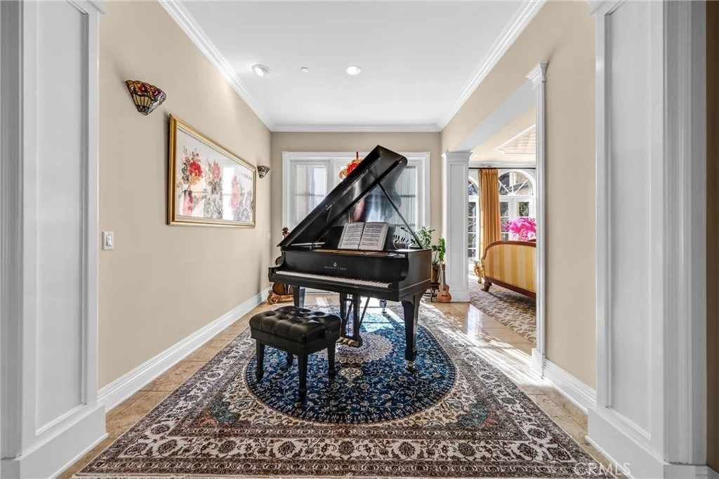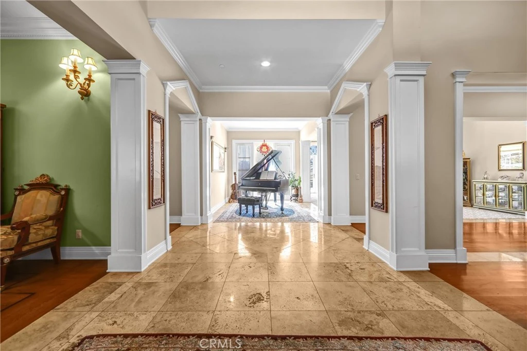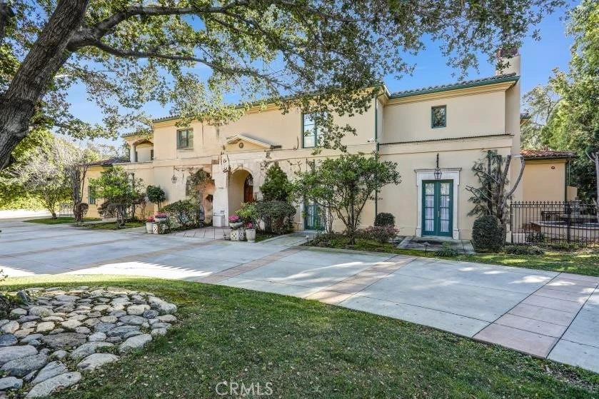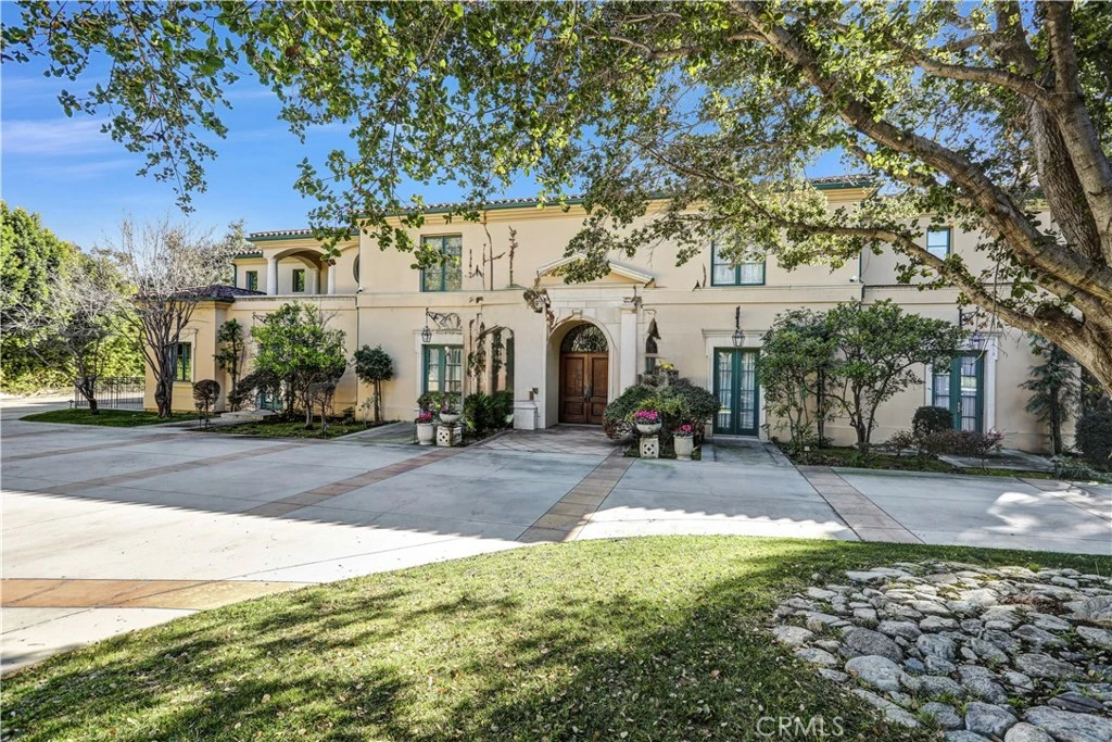 Opulent custom Italian estate, built in 2000, nestled in the most desirable Upper Rancho area of Arcadia, this exceptional residence embodies refined modern luxury, highlighted by bespoke craftsmanship and top-of-the-line building materials throughout. Thoughtfully designed and meticulously executed, it offers an impressive blend of architectural presence and everyday comfort with Sparkling newly remolded swimming pool, fountain, Spa, Cabana, regulation size lighted tennis court and guest house (900sqft included). Upon entry, soaring high ceilings create a dramatic first impression, enhancing the sense of volume and light in both the entryway and the living room. Elegant prodigy-inspired architectural detailing and clean modern lines define the interior, while expansive windows fill the living spaces with natural light and a seamless indoor-outdoor connection. A true architectural masterpiece, the home features a one-of-a-kind stain glass dome over the spiral staircase, showcasing exquisite craftsmanship and adding a distinctive sense of grandeur rarely found. The gourmet kitchen, equipped with of top-of-the-line appliances, open to a breakfast area and butler's pantry. Fireplaces in prime bedroom, living room, family room and all wood shelfed library. The well-composed layout is signatured for both refined entertaining and relaxed daily living, an elevator shaft has been saved for future convenience. The residence features a dedicated entertainment room equipped with a wet bar and retractable projection screen, offering a private and immersive setting for movie nights, sports viewing, or gatherings. A newly converted fitness room provides a convenient and private space for wellness and daily exercise. Outdoor areas offer a serene retreat, always ready for hosting or unwinding. Perfectly located near award-winning schools, parks, shopping, and dining. It is a remarkable and rare found gem that you can't miss it!