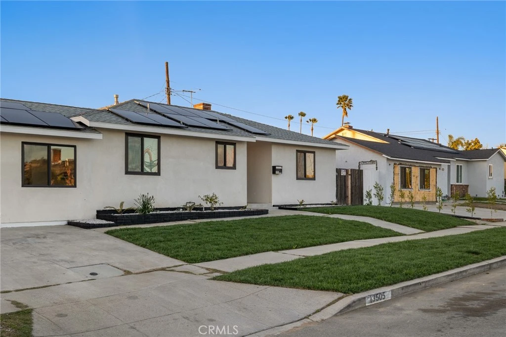 If you are looking for a nearly BRAND-NEW house with a JR ADU for passive income, this is the home you don't want to miss! Welcome to this stunning 3-bedroom, 2-bathroom house spanning 1,381 square feet, plus a 1-bedroom, 1-bath 444 sq ft brand new 2025-built JR ADU, offering elegant living space situated in a desirable pocket of Arleta. As you step inside through the custom door, you are greeted by an open floor plan that seamlessly connects the living and kitchen areas, making it perfect for both daily living and entertaining. The spacious living and kitchen areas feature impressive vinyl flooring that adds a touch of sophistication and makes maintenance a breeze. The custom kitchen offers plenty of cabinetry complemented by brand-new appliances. The bedrooms are filled with natural light, and laminate flooring runs throughout the rest of the home, enhanced by recessed lighting that illuminates the space beautifully. The JR ADU is highly functional, with every inch being usable. It offers an in-unit laundry area, a stand-in shower, a tankless water heater, and has its own address: 13507 Muscatine. Outside, you will find a cozy backyard, a patio, and plenty of greenery. Wait, there’s more: the solar panel is fully paid off. The seller has invested significantly in making this home impeccable for its next owner. Everything is updated: roof, plumbing, electrical, A/C, doors, windows, bathrooms, kitchen, tankless water heater, and so much more. You must see it to truly appreciate it!