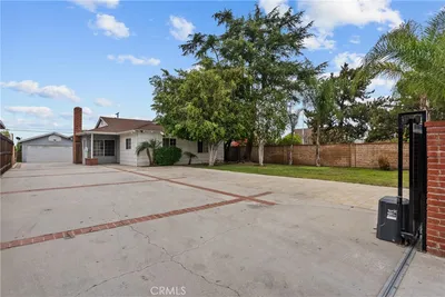 This spacious single-family home offers 5 bedrooms and 4 bathrooms, including a permitted garage conversion into a recreation room with its own private entrance from the alley, a bathroom, and direct access to a two-car carport. The main house features 4 bedrooms and 3 bathrooms with an open-concept kitchen remodeled with granite countertops, refinished hardwood floors, marble and laminate flooring, recessed lighting, dual-pane windows, central heat and air, and every bedroom with direct bathroom access. Recent upgrades include a new roof with paid-off solar (13 panels, 2016), a new HVAC system (2017), and an updated electric panel. With flexible living options perfect for multi-generational families, rental potential, or group living, this home offers exceptional value with a fenced yard, ample storage, and a prime layout that’s both practical and versatile.