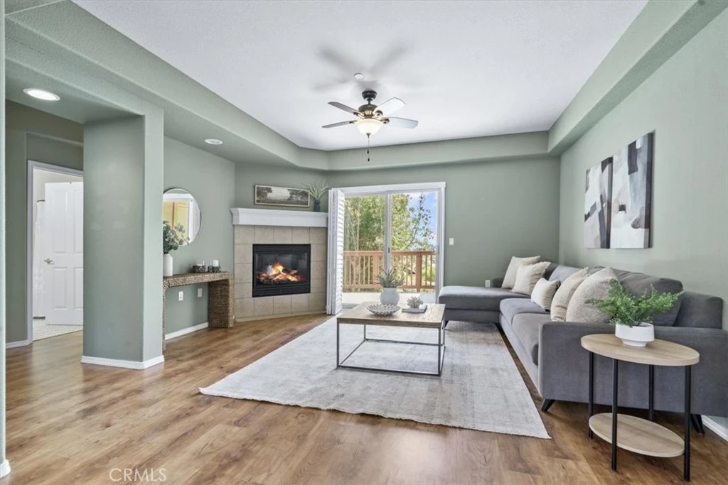 Discover serene living in this 2-bedroom, 2-bathroom end-unit residence! Offering 1,053 square feet of single-level living in the desirable Ocean Oaks 55+ community, this second-floor condo combines privacy and comfort with only one neighboring unit. Step into the inviting open floor plan where the kitchen and dining area seamlessly flow into the living room, featuring a cozy gas fireplace and sliding glass door that opens to a private patio with gentle tree views. The outdoor deck includes a large storage closet, and the end-unit location allows the home to fill with natural light. Beautiful plantation shutters throughout provide timeless elegance, complementing the well-appointed flooring and views from the primary suite. A hallway washer and dryer closet adds convenience to daily living. Building amenities include elevator access on one side and stairs on the other. Residents enjoy a community clubhouse with a full kitchen, outdoor gathering spaces, and beautifully maintained common areas. The location offers easy access to Highway 101 and proximity to Regal Theatre, Marshalls, Walmart, Trader Joe's, In-N-Out Burger, and more in shopping centers nearby. It includes one assigned covered parking space plus guest parking. Perfect for those seeking low-maintenance living in a vibrant 55+ community with modern amenities, stunning views, and prime location convenience. Information deemed reliable but not verified. Call your agent today!