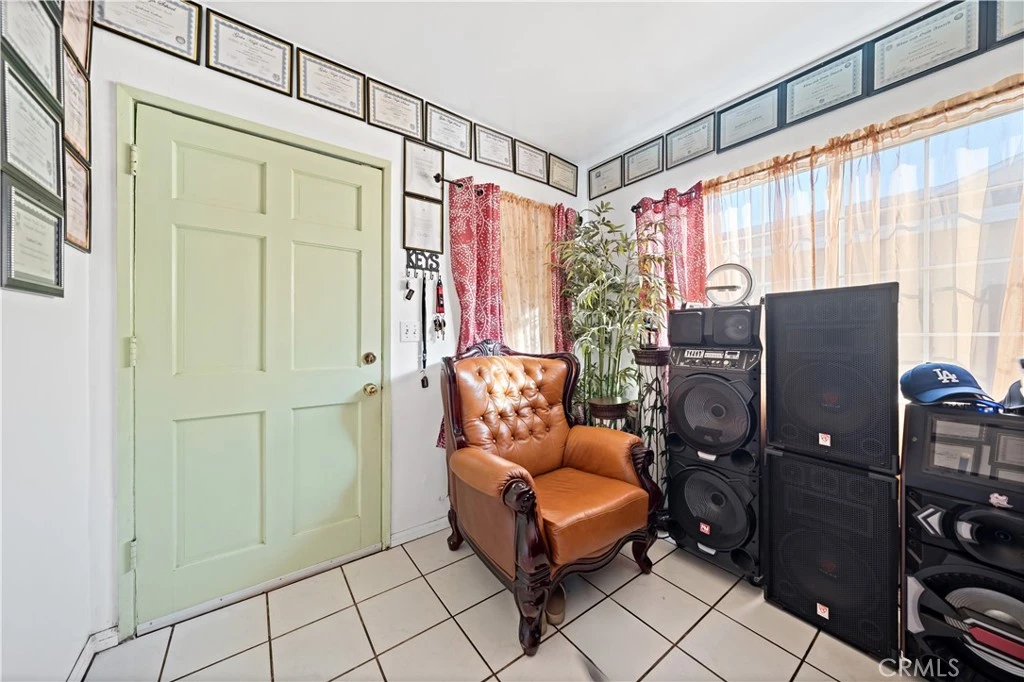 Single-story residence located on a residential Artesia street with convenient access to surrounding amenities and major commuting routes. The main home offers 3 bedrooms and 2 bathrooms within approximately 936 square feet, featuring a living room that opens to a dining area and a galley-style kitchen. Tile flooring runs through the main living areas, with natural light from multiple windows and a functional, efficient layout. The kitchen includes tiled countertops, open shelving, and direct access to the dining area. An exterior laundry area is located just outside the home, providing washer and dryer hookups in a covered utility space. In addition to the main residence, the property includes a converted detached structure currently used as a fourth bedroom or bonus room, offering flexibility for additional living, workspace, or storage use (buyer to verify permits and intended use). The front yard is gated and includes a concrete patio/parking area, while the lot extends back from the street with separation between structures. The home qualifies for the Ladder Up grant program through City National Bank (buyer to verify eligibility and program terms). Convenient access to nearby shopping, dining, and regional transportation corridors.