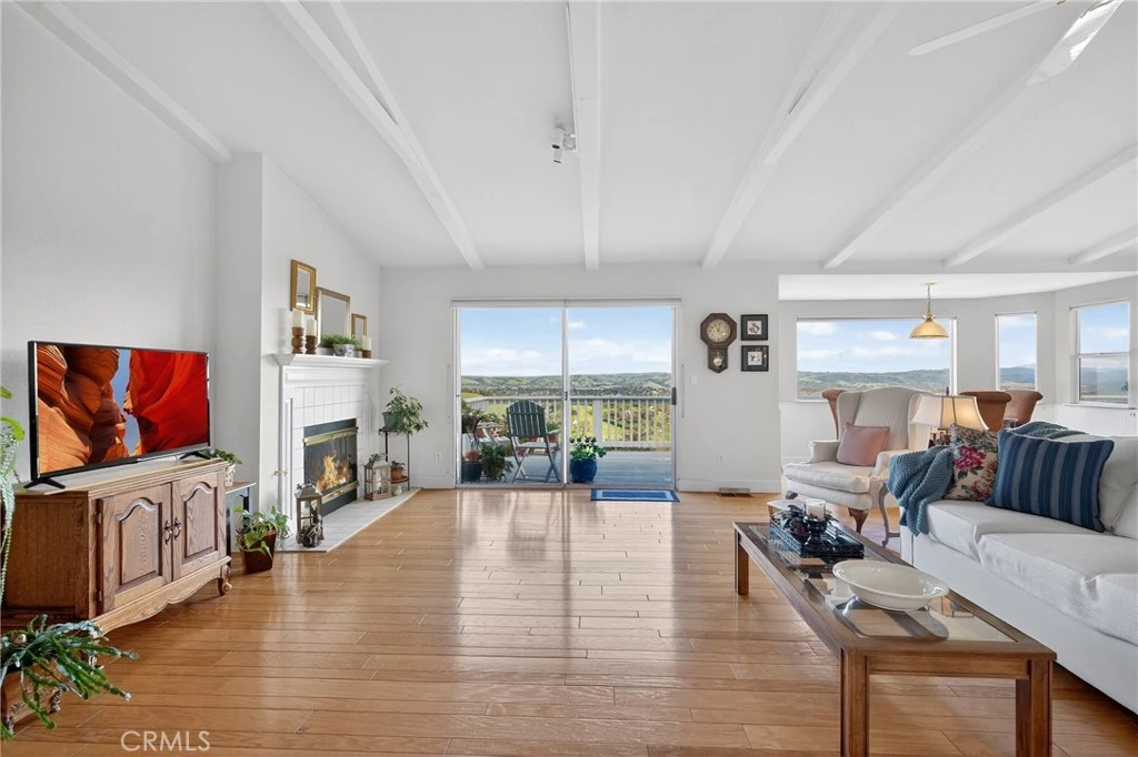 Sweeping panoramic hill and valley views define 11200 Santa Ana Road, a one-owner property positioned to capture the scenery from nearly every angle. Located in the desirable Long Valley Ranches neighborhood, this Central Coast home offers a rare blend of privacy, views, and flexible living spaces in a peaceful hillside setting. The main residence features an open-concept layout with vaulted ceilings and exposed beams, creating a light and airy feel throughout the living and dining areas. Sliding glass doors from both the living room and the primary suite open to upper-level decks, seamlessly blending indoor and outdoor living.The primary suite is privately separated from the additional bedrooms, offering a true retreat. Two secondary bedrooms are located in the opposite wing, one currently used as an office and featuring a glass door that opens directly to the back deck. The kitchen is positioned to enjoy the scenery and includes tile countertops, abundant cabinetry, a center island, and hill views from the kitchen window. The dining area is surrounded by windows, allowing natural light and rolling hills to frame everyday living. A cozy fireplace anchors the main living space, while the primary suite offers its own fireplace and deck access with tranquil views. The primary bathroom includes dual sinks, tile countertops and flooring, a soaking tub beneath tall windows, a walk-in shower with frosted glass enclosure, and built-in storage. A hall bathroom with high ceilings, tile finishes, and natural light connects to the second bedroom. A spacious laundry room offers extensive cabinetry and a generous folding counter. Recent upgrades include the air conditioning system and decking. Adding exceptional flexibility is the fully permitted guest house located above the garage, built in 1995. This private space features an open kitchen flowing into the living area, a center island, hill views from the kitchen window, a spacious bedroom with scenic views, a bathroom with tile flooring and a walk-in shower, new carpet throughout, and its own private deck. The stairway is pre-wired for a chair lift, offering future accessibility. Outdoor living is a highlight, with multiple upper-level view decks, peaceful walking paths, and a charming garden area complete with a greenhouse. With its elevated setting, captivating views, and thoughtfully designed living spaces, 11200 Santa Ana Road offers a peaceful Central Coast lifestyle that feels both private and connected.