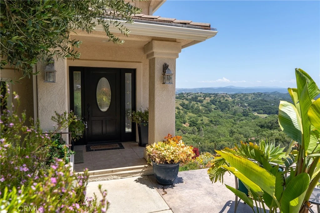 Discover 14600 El Monte, a retreat where architectural character meets a serene landscape. Set on 5.42± acres in the hills of Atascadero, this 3 Bedroom, 2 bath, 2,222± sqft home is positioned +/- 6 miles from Highway 101, Downtown Atascadero, and Highway 41 offering service to Morro Bay. Built in 2002, this thoughtfully designed home emphasizes natural light and scenic eastern views of the rolling hills with custom architectural details throughout. As you enter the home, you will find the living room is anchored by picture windows framing the outside nature, with direct access to a balcony for fresh air and morning light. The dining area overlooks a shaded front garden, creating a calm backdrop for everyday meals or gatherings. As you wander to the kitchen, you will find a refreshed look with Quartzite counters and backsplash, center island, abundant cabinetry (including glass-front accents) and a breakfast nook surrounded by windows looking out to native oaks. The adjacent family room offers elevated ceilings, a wood-burning stove and generous natural light. Each of the guest bedrooms include ceiling fans for added comfort. The primary suite provides a sense of retreat with its own stone patio, walk-in closet and ensuite bath featuring a walk-in shower, soaking tub with large windows as a backdrop and dual vanities. Additional practical features include a dedicated laundry room with a soaking basin and storage and a 'Quiet Cool' whole house fan. There is a detached 2-car garage with a separate finished room— that may be suited for workspace, hobby area or storage with built-in cabinets. As you step outside, you may discover the true beauty of this property, the spacious tiered patios provide opportunities for outdoor entertaining and are complemented by drought-tolerant and succulent plants. Stone pathways meander around the home, adding to its charm. A property that combines acreage, functional living spaces and proximity to town amenities—ready to support a range of lifestyles on the Central Coast.