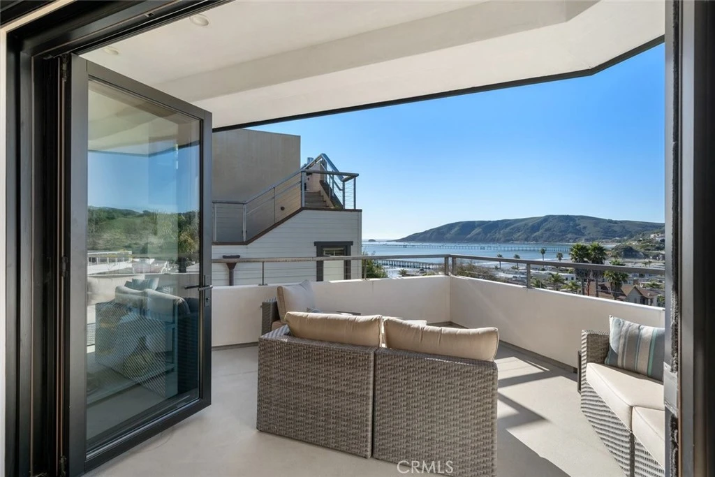 Panoramic Ocean View! Positioned to capture the best views in downtown Avila Beach, this custom two-bedroom, two-bath retreat is the epitome of refined California Modern design. Offering a seamless blend of luxury and location, this townhome frames mesmerizing views of the historical pier, rolling mountains, and of course, the Great Blue Pacific. The interior is a welcoming palette of European Oak floors, smooth textured walls, and accents of stylish quartz and chic tile.The great room is home to a panoramic view of the Avila Coastline through a 12-foot trifold door with a unique slate fireplace. The chef's kitchen boasts commercial grade appliances, timeless white shaker cabinets, and beautiful quartz countertops and offer space to create whatever suits your taste. The ground floor has a comfortable layout with master bedroom offering a spa like bathroom experience, and large walk in closet. The adjoining deck gives an outdoor place to enjoy the sights and sounds of the ocean. Fall asleep to the sounds of waves crashing and live the best vibe and weather on the Central Coast. If you need a 360 view, the rooftop perch is rated for a hot tub and plumb ready for an outdoor kitchen offering you flexibility with fulfilling your dream. This home comes completely turnkey with all furnishings as shown, and active vacation license which is professionally managed. With a strong rental history, you can enjoy the best of both worlds: Enjoy it when you want, and enjoy the rare opportunity of consistent income when you're away!