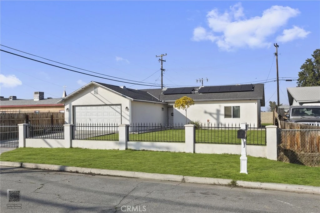 This 2024 new construction home is priced under market value and offers the unmistakable feel of a brand-new build from top to bottom. Completely rebuilt from the ground up, this like-new residence features 3 bedrooms, 2 bathrooms, and a 2-car garage, with PAID-OFF solar included. The home has been fully reconstructed with new framing, new plumbing, new electrical, a newly stucco'd exterior, new windows, a new roof, and a new HVAC system, delivering modern efficiency and true peace of mind. Inside, the home shines with stylish cabinetry, quartz countertops in both the kitchen and bathrooms, updated flooring, contemporary light fixtures, fire sprinklers, and a tankless water heater. The exterior is finished with fresh front landscaping and a wrought iron fence with a block wall, adding charm and strong curb appeal. This is a rare opportunity to own a thoughtfully rebuilt, move-in-ready home that offers today's construction standards at an exceptional value, what a gem!