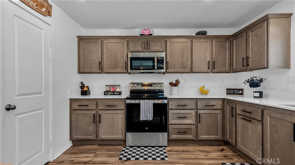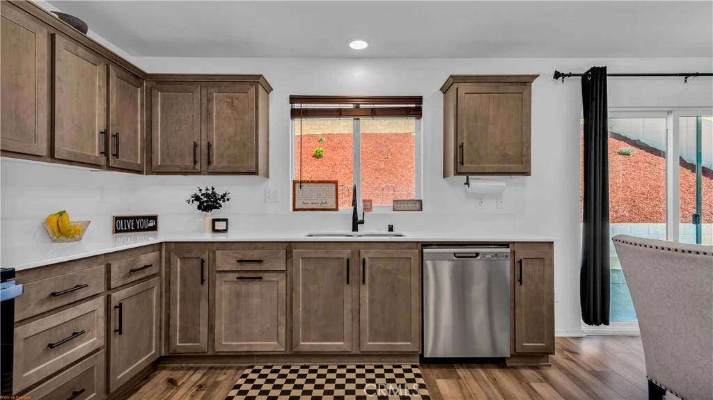 This home is move in ready. The Front and Back yards are landscaped and have very low maintenance. Featuring 4 Bedrooms and 3 Baths with a nice layout. Main bedroom with a private bathroom and walk in closets, Dual Sink Vanity. One bedroom and bath are downstairs. Elegant kitchen cabinets with lots of storage space and quartz counter tops. Very spacious bedrooms and living areas. Upgraded laminate flooring. Ceiling Fans. Indoor Laundry Room. Leased solar panels to save on your electric bill. Artificial grass makes the yard stand out all year while adding savings to your water bill. The back yard has a large concrete patio as well as a diamond shape design with pebble rock adding a nice touch. The garden area has bushes and citrus trees surrounded by mulch ground cover; as the plants and trees mature, this area will fill in with green and make it an appealing background as you exit to the back yard. HOA amenities include POOL/SPA, Outdoor Barbecue, Palyground, Sports Court, Hiking trails and more. Very nice home and Very nice community ready and available for a quick esrow !!! Come and take a look.