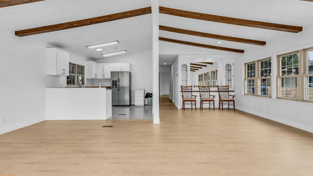 This unique manufactured home built in 1980 is located on a desirable corner lot inside the Mountain Springs 55+ community, where you own the land and enjoy low HOA dues. The home features 2 bedrooms and 2 bathrooms plus an additional bonus room that can be used as a third bedroom, office, or flex space. High ceilings with beautiful wood beam accents add character and warmth throughout the living area, and the home offers an abundance of natural sunlight through its beautiful windows. The interior has been freshly painted, new floring and features upgraded bathrooms along with a private laundry room for added convenience.The exterior offers excellent functionality with two separate vehicle entrances, a garage, and a gated access point. The property is fully fenced, making it ideal for dogs or pets and providing added privacy. This one-of-a-kind home combines charm, space, and convenience in a peaceful community setting.The property may qualify for financing. Seller will verify if the home has a 433A permanent foundation and engineer certification.Residents of Banning Estates enjoy a variety of community amenities including a clubhouse, pool, tennis and pickleball courts, shuffleboard, and active social clubs. The community also offers exceptionally low HOA dues and no space rent since you own the land. This move-in ready home is ready for its next owner--an excellent opportunity you won't want to miss.
