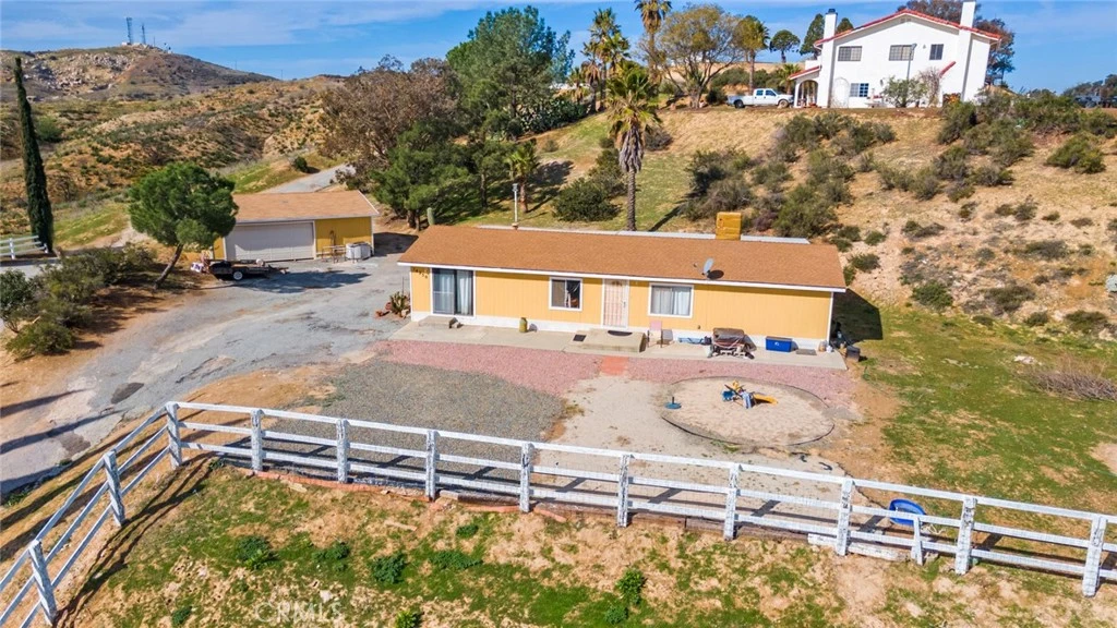 This slice of the country awaits the buyer that is looking for space to spread out and evenings for enjoying the city lights. Located on a knoll with access via a private drive, this home overlooks the meadows below, the city in the distance and the large mountain peaks. With 1.43 acres there is room for horses, orchards, parking and more. The home features 3 bedrooms, 2 baths, a big living space plus a bonus room that could have many possibilities: A game room, hobby room, exercise or play room. The kitchen is spacious with room for an island and the dining area enjoys the view. There is a 2 car detached garage with a finished office and a large storage shed. The home has new exterior paint, fenced and there is plenty of room around the home for a pool, play yard or a parking structure. This terrific location is rural, great for horses, orchard, vineyard and more, yet close to shopping and easy access to the freeway. A jewel like this does not come around very often so bring your style and creativity and make this your home.