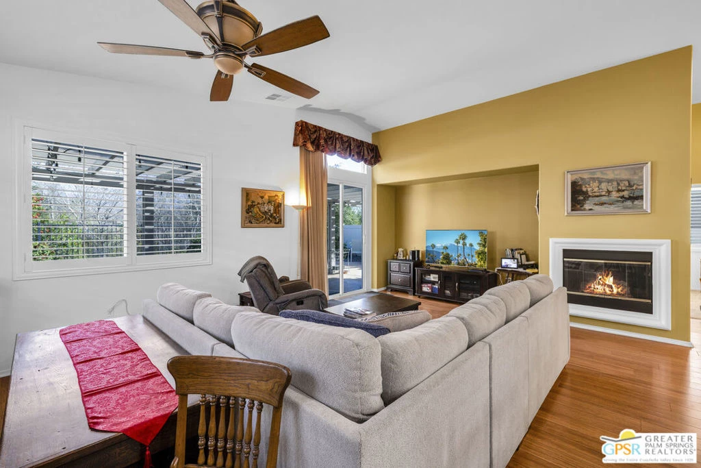Welcome to resort-style living in the highly desirable Four Seasons at Beaumont, Riverside County's premier gated 55+ active adult community. This beautifully maintained Heritage III single-story home offers 2 bedrooms, 2 full baths, and approximately 2,076 sq. ft. of comfortable, thoughtfully designed living spaceperfect for today's active lifestyle. Step inside to an inviting open floorplan, where a spacious great room with cozy fireplace forms the heart of the home and flows seamlessly into the eat-in kitchen with large center island, ideal for both everyday living and entertaining. A den/office with double doors provides flexible space for reading, hobbies, or working from home. Additional highlights include true single-level living, a spacious indoor laundry room, and an attached 2-car garage with ample storage. One of the home's most appealing features is the private backyard, where you can relax under the Alumawood patio cover, surrounded by mature, lush landscaping, while enjoying tranquil greenbelt views of Hiking Trail "B" as it winds through the community - your own peaceful retreat to enjoy year-round. Four Seasons offers an exceptional resort-level lifestyle, featuring a clubhouse, bistro restaurant, hair salon, theater, library, billiards and table tennis, craft room, and numerous social spaces for events and gatherings. The impressive amenities continue with a fitness center, indoor and outdoor heated pools and spas, along with tennis, pickleball, bocce, and more. Ideally located near shopping and restaurants, and just 30 minutes from downtown Palm Springs, this well-priced home presents a rare opportunity to enjoy comfort, privacy, convenience, and vibrant community living in one of Beaumont's most beloved neighborhoods. Now is the winter to be content and live in the home you love - don't miss the chance to make this one yours!