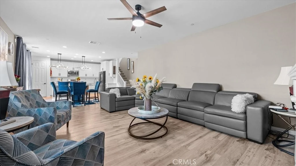 Welcome to a home where thoughtful design meets everyday comfort. This beautifully maintained residence offers a spacious open concept layout that feels both inviting and functional. The main level flows effortlessly from the expansive great room to the dining area and into a well-designed kitchen featuring a large center island, abundant cabinetry, and a generous walk-in pantry. It is perfect for hosting, gathering, or simply enjoying daily life. A full bedroom and bathroom downstairs provide flexibility for guests, extended family, or a private office space. Upstairs, the oversized loft creates the ideal secondary living area for movie nights, a playroom, or a quiet retreat. The owner’s suite is a true sanctuary with a spa-inspired bath and an expansive walk-in closet designed to keep everything beautifully organized. A conveniently located upstairs laundry room adds practicality to the thoughtful floorplan. Beyond the interior upgrades, including quartz countertops, upgraded flooring, and a refined staircase, the backyard truly sets this home apart. Designed for those who appreciate fresh living, the garden is rich with thriving fruits and vegetables. Enjoy homegrown grapes, bell peppers, green onions, tomatoes, herbs, cilantro, and strawberries, along with mature apple, peach, lemon, and pomegranate trees. Whether you already have a green thumb or are ready to cultivate one, this outdoor space offers the opportunity to harvest directly from your own yard. This is more than a home. It is a space to grow, gather, and thrive.