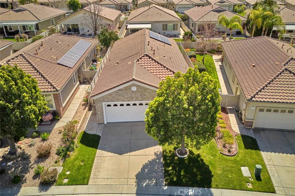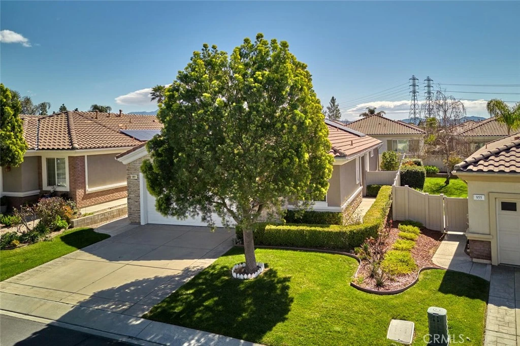 Charming 2-bedroom, 2-bath home with an office/den nestled within the vibrant and sought-after 55+ community of Solera. The interior and exterior of the home have been painted recently! Thoughtfully selected flooring enhances the home: tile extends through the main living areas, kitchen, bathrooms, and laundry room, while the bedrooms and office feature comfortable and stylish wood-like laminate flooring. The home comes equipped with a newer refrigerator and washer/dryer. Enjoy the ease of a beautifully designed, low-maintenance yard. Free internet and basic cable TV are included and paid through the HOA. The home includes solar with small monthly lease payments averaging less than $40 per month. Discover the vibrant, resort-style living at Solera. The centerpiece of the community is a magnificent clubhouse with a state-of-the -art fitness center, indoor walking tract, tennis and bocce ball courts, a refreshing pool and spa, billiards room, library, and versatile meeting/banquet spaces. Residents love the endless social scene: clubs, classes, events, and group activities galore. Positioned near the I-10, minutes from Cabazon Outlets, Morongo Casino, championship golf and the vibrant energy of Palm Springs. Come experience the active, fulfilling retirement you have earned.