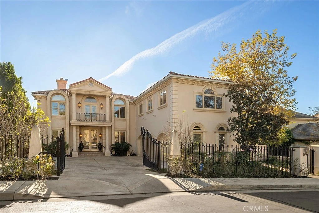 Nestled within the prestigious guard-gated enclave of Bel Air Crest on a private cul-de-sac, this stunning estate embodies timeless elegance and exceptional privacy. Featuring 5 bedrooms and 6 bathrooms, the home welcomes you with a breathtaking two-story foyer crowned by a dramatic glass cupola dome, flooding the space with natural light. The formal living room exudes sophistication with a classic fireplace and French doors that open to beautifully landscaped grounds. Designed for both grand entertaining and intimate living, the family room offers a warm fireplace, rich wood floors, and custom-built cabinetry. The expansive gourmet kitchen is a chef’s dream, complete with a generous center island and a sunlit breakfast area. The main level also includes a formal dining room for elegant gatherings, a refined private office with fireplace, a maid’s room, and a discreet back staircase leading to the upper level. A private elevator ensures effortless access throughout the home. Upstairs, the primary retreat serves as a serene sanctuary with dual spa-inspired bathrooms, steam showers, and a tranquil sitting area. A large private balcony overlooks resort-style grounds featuring a sparkling pool, spa, gazebo, koi pond, Peek -a -boo ocean view and sweeping mountain views. Three additional bedroom suites and a versatile bonus room—ideal for a theater, fitness studio, or media lounge—complete the upper level. Beyond the residence, Bel Air Crest offers unparalleled amenities: five tennis courts, basketball courts, pool, dog park, playground, and a newly remodeled clubhouse with a state-of-the-art fitness center, elegant lounge areas, and a fully equipped kitchen. This estate delivers an extraordinary lifestyle of luxury, leisure, and convenience