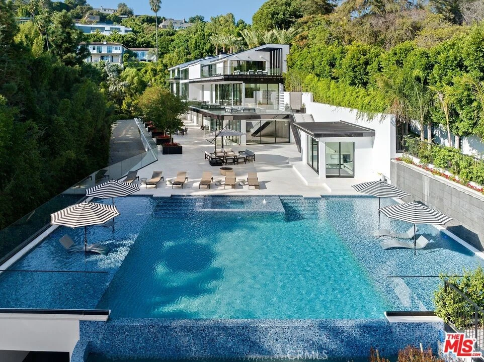A breathtaking expression of sleek, modern architecture and elevated luxury, this newly constructed gated estate rests along Bel Air's prestigious Billionaire's Row. Beyond the impeccably landscaped courtyard is an extraordinary 20,000 square foot interior, masterfully designed to capture sweeping unobstructed views surrounded by some of the world's most valuable real estate. Created for grand scale entertaining, the seamless multi-level floor plan reveals expansive living spaces defined by dramatic linear fireplaces, soaring ceilings, and walls of automated glass that effortlessly merge indoor and outdoor living. Floor to ceiling windows flood the home with natural light while framing spectacular vistas; by evening, designer pendants, contemporary chandeliers, and refined recessed lighting create an intimate, sophisticated ambiance. All three levels are accessed by a statement staircase or commercial grade elevator and are appointed with premier amenities. Five sumptuous bedroom suites each with bespoke finishes, spa-inspired baths, generous walk-in closets, and private balconies, offer exceptional comfort. The primary suite is a retreat unto itself, showcasing vaulted ceilings, an elegant fireplace and expansive wraparound balcony, dual boutique style closets, and two lavish spa baths featuring oversized waterfall showers and a sculptural soaking tub. Additional highlights include a state-of-the art theater, fully equipped fitness center, wet and dry saunas, and a private salon/spa room. Outdoors, a striking infinity edge pool commands dazzling city views. A truly unique feature of the property is its massive subterranean garage and outdoor space, which can accommodate almost 50 vehicles, a rarity in Bel Air. This extraordinary estate presents a rare opportunity to experience uncompromising design, comfort and world class luxury. Seller to carry 50% at a 7% interest.