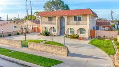 A rare opportunity located in the city of Bellflower with a spacious main home and an ADU. This beautiful and unique property's main house has over 2500 square feet of living space. This home has been completely remodeled with fresh paint, luxury vinyl flooring, open concept, oversize waterfall island in the kitchen (an entertainer's delight), shaker cabinets and quartz countertops. There's one bedroom and a full bath downstairs with walk-in shower and a jacuzzi bathtub. As you walk upstairs, you'll see the ensuite bedroom with a fireplace, a private balcony, walk in closet and a bathroom with dual sinks, a walk-in shower and a jacuzzi tub. There's also another bedroom located upstairs. The backyard has a covered patio and spacious backyard. The perfect space to have summer BBQ's and host gatherings. The ADU has its own private entrance with 2 bedrooms and full bathroom. The kitchen comes equipped with stainless appliances. Conveniently located just minutes from downtown Bellflower, Cerritos mall and close to 605 and 91 freeways. Come and see this beautiful gem of a property that won't last!