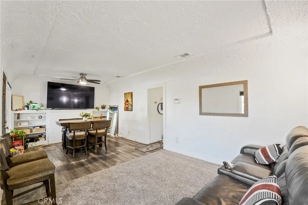 Welcome home! This charming starter home is full of potential and ideal for a first-time buyer in Bellflower. While the property profile reflects a 2-bedroom, 1-bath layout, the home features 3 bedrooms and 1 bathroom. The bedrooms are spacious with wood flooring and blackout blinds, along with a beautifully updated bathroom featuring a tub/shower combination and tile flooring with "Central HVAC." The property is fully enclosed with an iron fence and offers ample parking, including a long driveway. A private front porch with a newer front door welcomes you into an open, bright living room filled with natural light, which features newer windows, ceiling fans in all the rooms, wood flooring, and a cozy fireplace. The recently remodeled kitchen features countertops and tile flooring, creating a warm, functional space. A separate laundry area leads conveniently to the backyard. The backyard is perfect for entertaining, complete with low-maintenance turf—ideal for hosting gatherings year-round and a pergola covered seating area. The garage includes a shower and open space, offering excellent potential for a future ADU. Close to the Mall, Grocery Stores, Downtown Bellflower and the 110 /105 / 605 freeways. This is a must-see property to truly appreciate its value and possibilities!