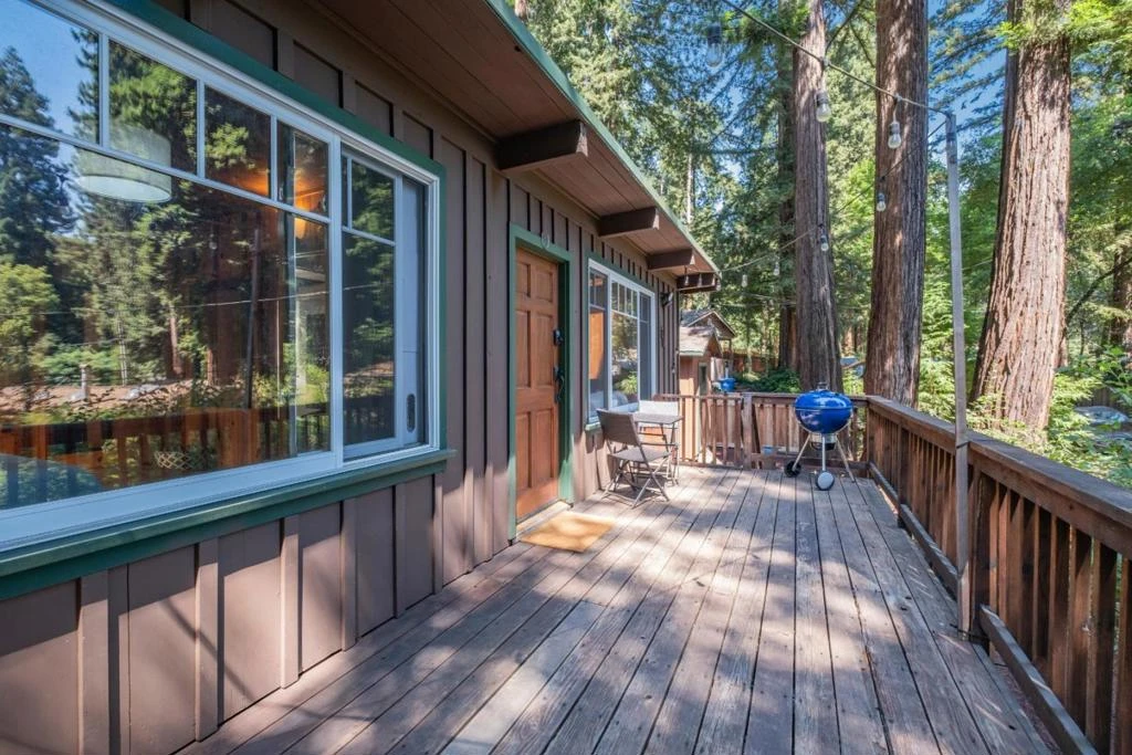 Just a stones throw from downtown Ben Lomond and all that it offers, including La Placa Bakery, Ben Lomond Market, and locals' favorite Highlands Park, you will find the most charming mountain cabin. This 1 bed/1 bath home features a spacious deck perfect for entertaining or relaxing after a long day of work with a cool beverage while listening to the babbles of the nearby San Lorenzo River. Skylights and large picture windows allow for abundant natural light to stream through and offer views of the majestic redwoods. Another perk of the house is having natural gas utilities. Outside, you will find a bonus structure that could be converted to the perfect artist studio or yoga room. The yard gets an ideal balance of sun and shade for those with a green thumb and who want to cultivate their own fruits and veggies or flower gardens. A wonderful sense of community is found in this small neighborhood with friendly neighbors and a semi-private neighborhood swimming hole nearby. Upgrades include newer kitchen appliances, NEST thermostat, window air conditioner for the warmer months, and a transfer switch meter cable installed by PG&E.