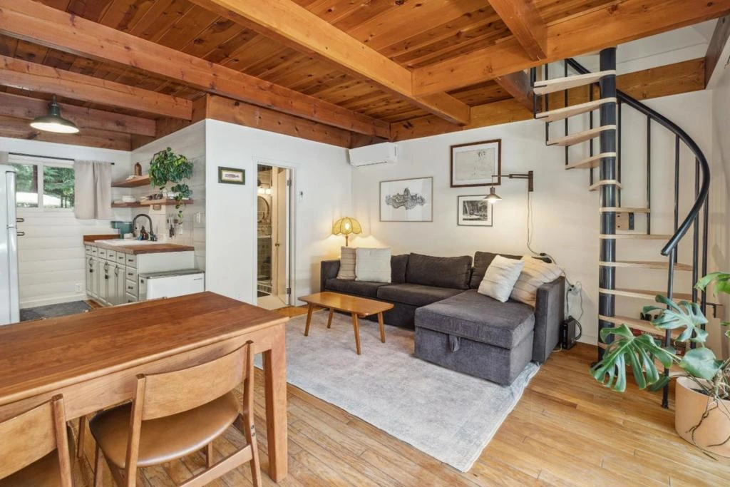 With private river access and oversized windows that allow gorgeous natural light to stream into the home, its easy to see what makes this 1 bed/1 bath home so unique. The spacious deck overlooks the San Lorenzo River, nearly doubles the living space, and serves as the perfect place to relax with a glass of wine from one of the many local wineries while listening to the peaceful sounds of chirping birds and gentle river burble. A spiral staircase leads to the bedroom, where several skylights give the room a bright, open feeling. Both the kitchen and bathroom have undergone recent renovations making this home truly turn-key. Spend your summers swimming in the crystal clear waters that are right outside the front door. It currently operates as a very successful Airbnb. The vacation rental permit does not convey, and new owners will need to apply for a permit should they want to continue using the property as a vacation rental. Close to Highland Park, crowd favorite La Placa Bakery, epic hiking trails, and more! Being sold furnished with custom pieces throughout the home. Come live out your mountain living dream in this HGTV approved turn-key home.