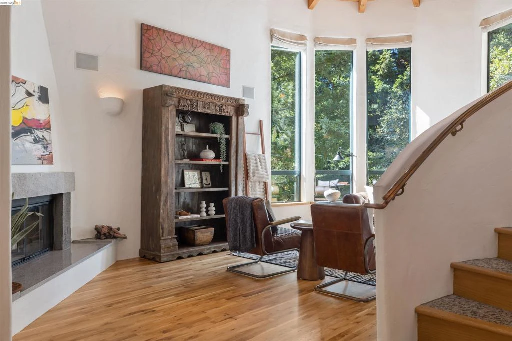 1102 Grandview Dr. is a sunlit contemporary Spanish/Med sanctuary perched above Vicente Creek. Designed & built by famed local architect Jim Servais this enchanting “treehouse” retreat sits on a large, wooded parcel. This property delivers rare privacy, peaceful outlooks & a true sense of escape. Inside, the home balances warmth & style with artistic touches w/ a distinctive blend of vintage character & modern updates—including refreshed baths & rebuilt decks. The primary suite is a private hideaway, featuring cathedral ceilings, skylights, large walk-in closets & a cozy window alcove. Enjoy direct, easy entry from the garage into the eat in kitchen, then flow out to the expansive, upper deck. This level also features hand carved beams & columns in the dining room & a grand double-height vaulted ceiling living room. Artisan woodwork, plasterwork, copper lighting and handrails emphasize the handmade qualities of this stunning build. Downstairs, a flexible second living level adds two additional bedrooms and baths-one ideal as an alternate primary ensuite—plus a cozy family room & a show stopping lower deck. With its own entry from ample lower parking, this level can serve many purposes. Magical outdoor vignettes, a bubbling creek, calming privacy-Claremont Hills at its best.
