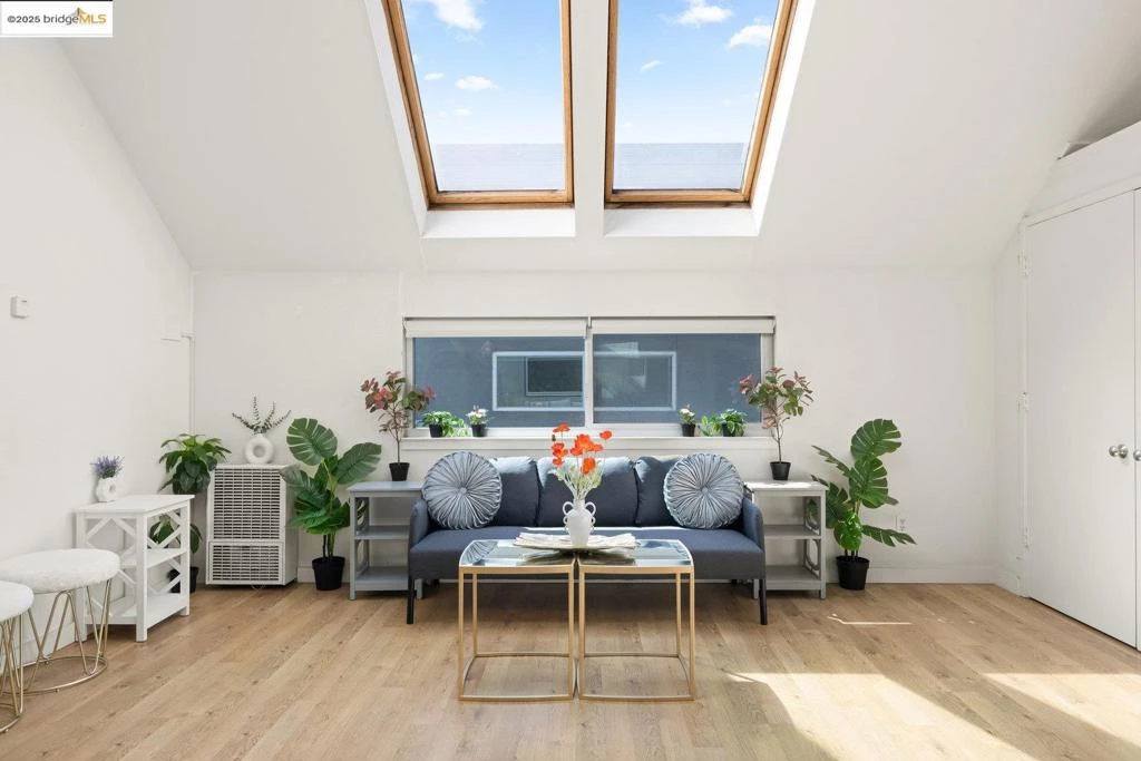 Bright, spacious, and extremely versatile, this generously-sized true live/work condo offers approximately 1,452 sq ft.* of thoughtfully designed space across multiple levels. With two separate entry doors and clearly defined zones, the property functions beautifully as two distinct units. The ground floor level-in workspace features a 2-room layout with a utility sink and half bath—ideal for an office, studio, or creative business. The upper-level living area, also open-plan but with a more residential feel, is filled with natural light and includes a fully equipped kitchen, a full bath, in-unit laundry, and a third-floor bedroom retreat with skylights and a walk-in closet. Enjoy the convenience of one deeded parking space and unbeatable proximity to Berkeley’s famed 4th Street district. Just moments from acclaimed restaurants, shops, boutiques and vibrant cultural experiences—with easy access to public transit and freeways—this condo offers the best of urban living and entrepreneurial independence. Enjoy the freedom to live, create, and thrive at this dynamic and eclectic residence. (*Sf per public records, buyers are advised to investigate permitted uses w/local zoning dept.)