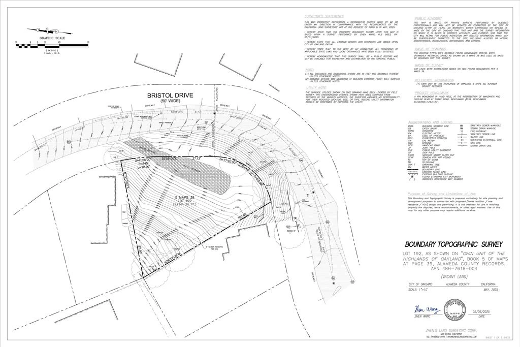 Elevate your vision in Berkeley’s prestigious Claremont Hills. This 6,656 sq ft irregular hillside parcel offers a rare opportunity to build a custom residence surrounded by established luxury estates. The property features an existing building pad with utilities nearby, plus tentative architectural drawings for an approximately 2,468 sq ft two-story home. The location combines serene hillside privacy with outstanding accessibility. Just minutes to Highway 24 and the Claremont Tunnel, providing direct commuter access to Oakland, Walnut Creek, and beyond. Quick connections to I-80 and I-580 enhance regional mobility, while nearby Orinda and central Berkeley offer dining, shopping, and everyday conveniences. ADDED BONUS! There is a water meter on site! Close to UC Berkeley, a major academic and cultural anchor supporting long-term value, and near the East Bay Regional Parks with miles of trails, open space, and panoramic Bay Area views. A premier opportunity to create a high-end custom home in a location where luxury truly begins with access and setting.
