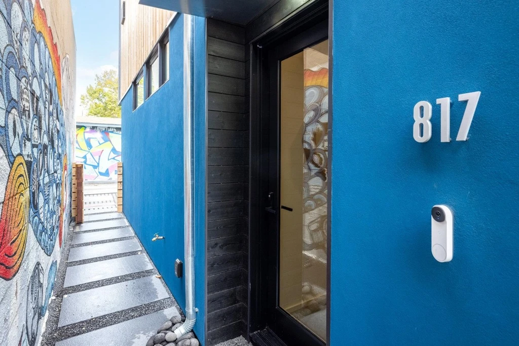One of six sleek, sustainably built 2BD/1.5BA newly completed residences rise on a once-vacant and walkable infill site just blocks from parks, cafés, shopping, and transit. Each home flips convention with an inverted floor plan—private bedrooms below, open living and kitchen space above—and a rooftop deck showcasing Bay breezes and hill views. Thoughtful design brings in abundant daylight through large Marvin windows with unconventional sunscreens, while tight construction, high R-value insulation, and HRV ventilation ensure comfort and efficiency. Eco-forward features include permeable paving, drivable grass parking, natural wood siding, on-demand hydronic heat, recycled glass counters, low-flow fixtures, dual-flush toilets and individual 220 outlets for EV charging. Ten new trees, including fruit varieties, add beauty and shade. You'll find this modern Berkeley living smart, sustainable, and unapologetically stylish. Pricing may differ per unit.