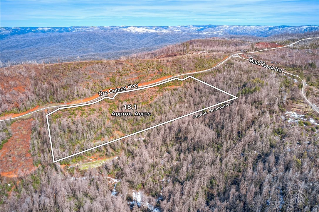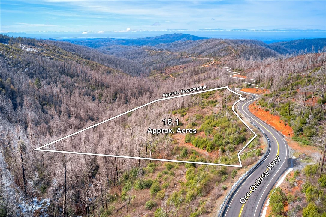 OWNER MAY CARRY: 18.1+/- Acres in the Sierra Foothills. Panoramic Mountain View parcel. A Fresh Start with Endless Potential opportunity nestled in the foothills just above the base of the Sierra Nevada mountains at approximately 3,200 feet in elevation. With an impressive 1,400+/- feet of frontage along Oroville Quincy Highway, this property offers excellent visibility and access in a serene mountain setting. Previously impacted by area fires, the land now presents a true blank slate with an open canvas where new growth is already emerging and young trees are beginning to reclaim the landscape. The natural regeneration creates a unique opportunity to shape the property to your vision, whether for a private retreat, recreational escape, etc. (Buyer to verify zoning and uses). An old, overgrown access road runs through the property, leading to a small pad area and several spots suitable for creative clearing. Galen Creek at the base of property. With no existing improvements, you have the freedom to design and build from the ground up with proper planning. Ideally located just a short drive from Lake Madrone and a scenic drive to Lake Oroville. Outdoor recreation at your fingertips. Boating, hunting, fishing, hiking, and year-round fresh mountain air. The property is zoned TM and sits approximately 1/3 mile below the upper Oroville Quincy/Bald Rock Road intersection. If coming from town, pass the first Oroville Quincy/Bald Rock intersection, if you reach the second intersection, you’ve gone just a bit too far. Offered at an affordable price point, this is your chance to own a substantial piece of Northern California foothill land and create something truly your own. Ask your agent on the easy owner carry terms available.