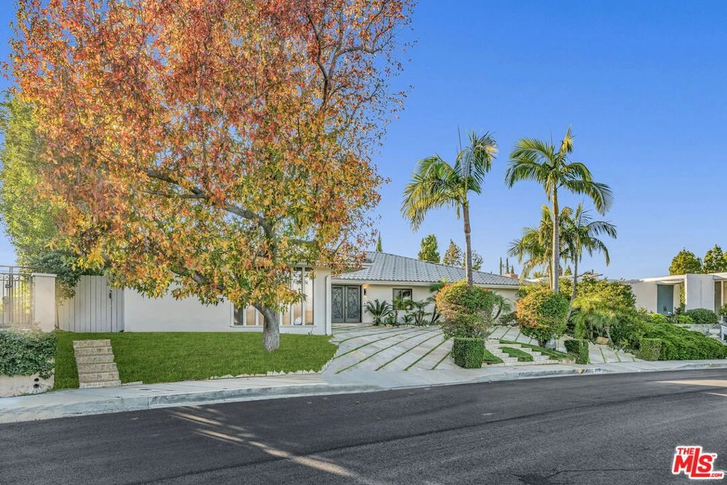 FURNISHED/UNFURNISHED. NEWLY REMODELED! VIEWS!!! 4 BEDS/3,5 BATHS PLUS GYM/OFFICE. Tastefully remodeled with HIGH-END LUXURIOUS designer finishes. This SINGLE LEVEL marvelous Mid-Century home is an absolute STUNNER. Boasting PANORAMIC CANYON AND MOUNTAIN VIEWS from ALL the living spaces and bedrooms, this sensational home will take your breath away the moment you step inside. FLOOR-TO-CEILING picture windows, glass doors and abundance of natural light throughout instantly provide the feeling of an open and airy elegance. Featuring an OPEN-CONCEPT, WELL-DESIGNED FLOOR PLAN, this home has a great indoor/outdoor flow. You'll love to host guests and loved ones in the backyard complete with a breathtaking ENORMOUS DECK, a resort-like sparkling pool (featuring lustrous and dazzling glass tiles reminiscent of rainbow-like play of colors), spa, and serene waterfalls. Additional features include one-of-a-kind RAINFOREST MARBLE, ONYX, TRAVERTINE, CEASERSTONE, GRANITE FINISHES, state-of-the-art APPLIANCES, 2 car garage PLUS a circular driveway. Located on a quiet street with no neighbors across, next to the guarded, upscale Beverly Park community. WELCOME HOME!