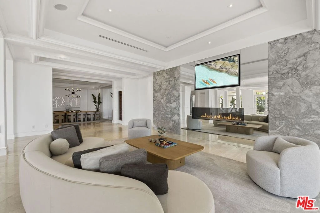 Perched on one of Trousdale Estates' most coveted streets, this newly remodeled Neo-Modern estate showcases extraordinary panoramic city-to-ocean views, stretching from the Los Angeles skyline to the Pacific horizon. Spanning over 12,000 square feet, the residence blends dramatic scale with refined sophistication, featuring soaring ceilings and expansive walls of glass that flood the interiors with natural light while perfectly framing the breathtaking vistas throughout the home. A private gated and highly secure entry leads to grand entertaining spaces and a state-of-the-art chef's kitchen outfitted with top-tier appliances. The outdoor grounds feel like a private resort, complete with a pool, striking water features, and expansive terraces designed to capture sweeping city lights and sunset ocean views. The luxurious primary suite enjoys its own stunning city-to-ocean panorama, while additional amenities include a private theater and elevator. Offered for lease, this exceptional Trousdale estate delivers privacy, security, scale, and some of the most captivating views in all of Los Angeles.