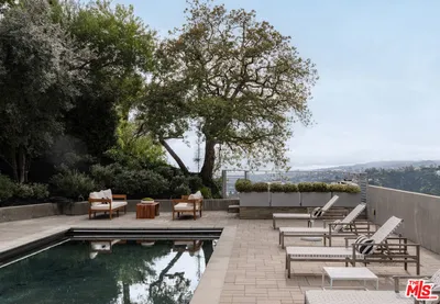 First time on the market since built by an engineer for his own family, this gated contemporary masterpiece north of Sunset in prime Beverly Hills draws inspiration from Richard Meier and the iconic Hotel del Coronado to offer approximately 9,525 square feet of refined architectural living. Recently reimagined to blend modern geometry with timeless craftsmanship, the residence features a dramatic glass and stone entry with a sweeping spiral staircase, soaring ceilings, and expansive windows framing unobstructed views from Downtown to Palos Verdesall without a lengthy hilltop drive. The floorplan offers unparalleled flexibility, particularly on the expansive, light-filled lower level; featuring a private secondary entry, this space is ideally suited to create multiple additional bedroom suites, a high-tech wellness center, or a fully independent guest wing. This adaptability, combined with a main-floor primary sanctuary and staff quarters, makes the estate uniquely prepared for multi-generational living or high-profile hosting. Perfectly positioned for the global stage, the home offers immediate access to major transportation arteries, providing a seamless commute to upcoming world-class events including the World Cup at SoFi Stadium and the 2028 Los Angeles Olympics. Luxury amenities abound, including a gourmet Viking and Sub-Zero kitchen, a 500+ bottle wine cellar, a full-service elevator, and a 5-car collector's garage with a motor court. The resort-like grounds unfold with a dark-bottom infinity pool, dual spas designed for cold plunges, a sport court, and a citrus orchard, all supported by rigorous infrastructure such as a commercial backup generator and 5-zone HVAC. This is a rare opportunity to own a legacy estate that balances the privacy of a quiet cul-de-sac with the strategic connectivity required for the future of Los Angeles.