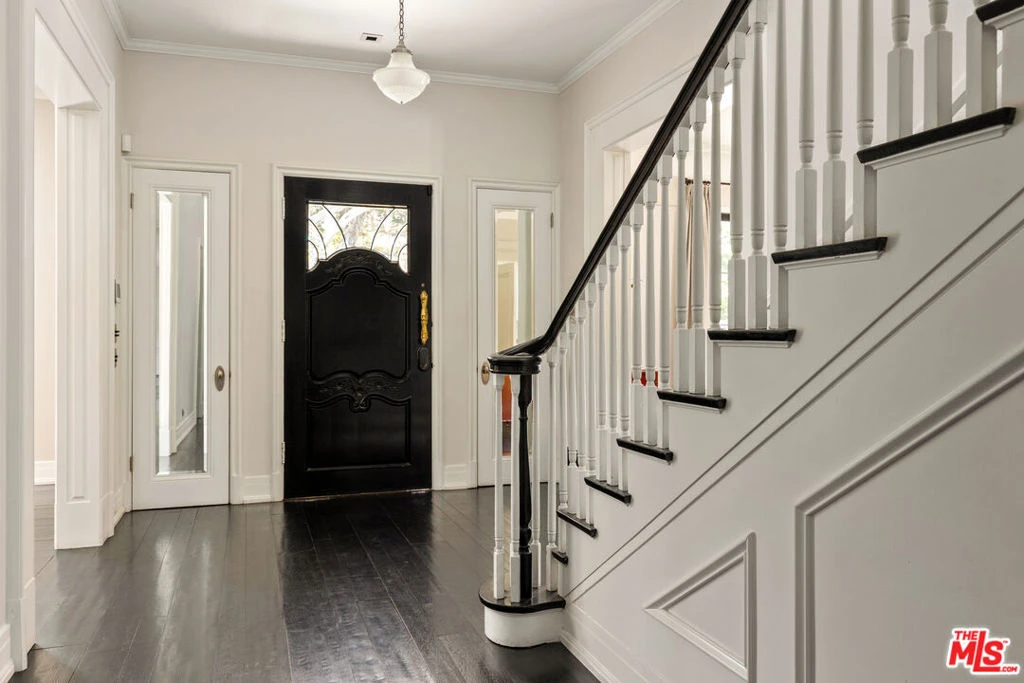 Stunning and fully remodeled traditional estate on almost half an acre in the heart of Beverly Hills Flats, offering 6 beds, 7 baths, and approximately 6,200 sq ft of elegant living space. The main house showcases a true chef's kitchen, a luxurious primary suite with salon sink, expansive closets, spa-like bath, and state-of-the-art amenities throughout. Retractable glass doors open the family room to a lanai that seats 22, seamlessly blending indoor-outdoor living with a lushly landscaped yard, pool, and spa- ideal for entertaining. Five en suite bedrooms in the main residence plus a beautifully renovated guest house with kitchenette, laundry, and bath complete this private oasis. A rare offering on one of the most sought-after streets in Beverly Hills.