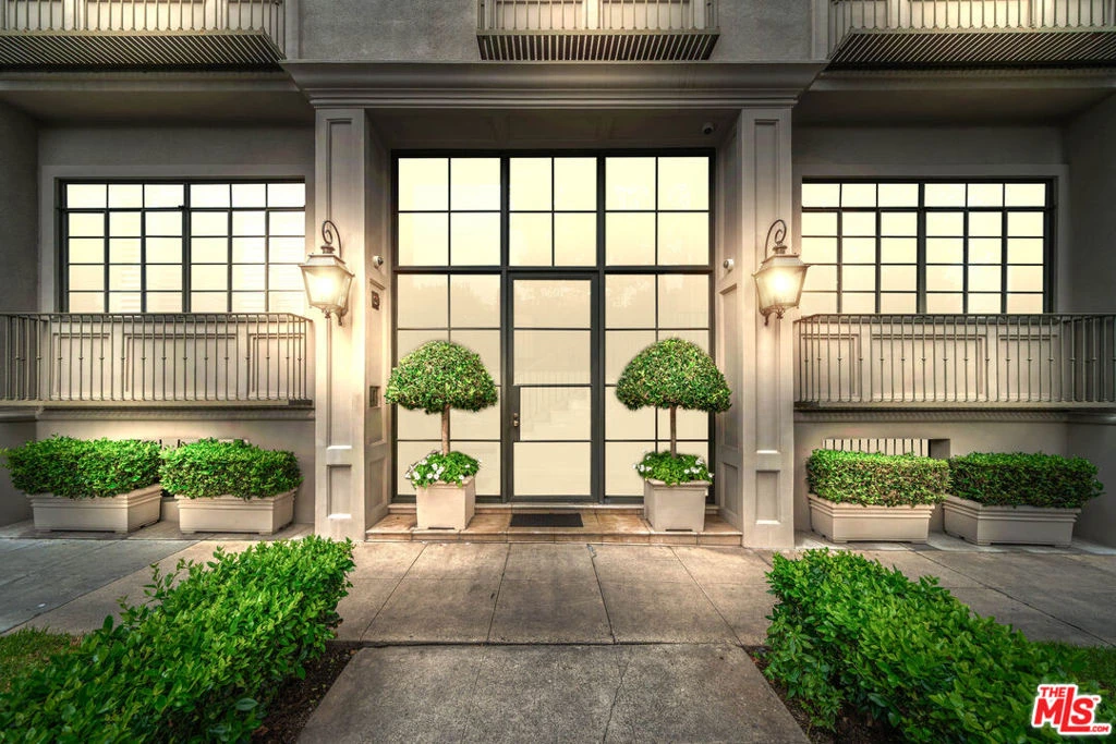 Manhattan-Style Pied--Terre sophisticated and upscale, this remodeled residence is located just steps from world-class shopping and dining, moments from Saks Fifth Avenue, the Beverly Wilshire Hotel, and Rodeo Drive. Designed to perfection by acclaimed interior designer Waldo Fernandez and architect Peter Choate, the stylish condo features a gourmet galley kitchen with a Viking six-burner stove, bluestone marble countertops, stainless steel appliances, and rich solid oak hardwood floors. High ceilings with crown molding, a luxurious marble bath, and French doors with custom plantation shutters create an elegant, inviting atmosphere. Additional highlights include a private terrace, Bosch washer/dryer, central heat & air, and two tandem parking spaces with locked storage in a secure gated garage. The building offers a rooftop deck with sweeping Century City and Beverly Hills views, concierge-level security with cameras, and elevator access.