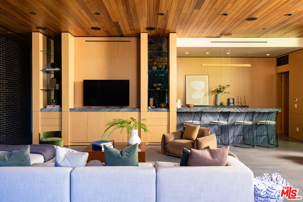 This stunning new architectural gem, designed by the acclaimed Noah Walker, sets a new standard for luxury living. Nestled behind the prestigious gates of Oak Pass Road in Beverly Hills, this ultra-private estate offers a rare combination of seclusion and grandeur. Spanning across an expansive floor plan, the home features 6 spacious bedrooms and 9 lavish bathrooms, perfect for both intimate living and large-scale entertaining. The journey begins through an impressive glass pivot door, greeted by a 10-foot indoor greenery wall, elegant brick-clad columns, and soaring hardwood ceilings. The state-of-the-art kitchen is a chef's dream, with dual marble islands, oak cabinetry, top-of-the-line Wolf and Subzero appliances, and two Miele coffee makers. The kitchen seamlessly flows into the dramatic two-story living area, complete with a custom floating staircase that connects all levels of this architectural wonder. Designed to blend indoor and outdoor living, the home boasts 50-foot Fleetwood pocket doors that open to the meticulously landscaped grounds, featuring a zero-edge pool and spa, an outdoor kitchen, fire pit, olive trees, and multiple lounging areas all set against breathtaking panoramic views. First-class amenities include a private movie theater, fully equipped gym, Himalayan salt sauna, dual steam showers, a temperature-controlled wine display, three private balconies, and a Crestron smart home system. The motor-court, lined with mature oak trees, adds the finishing touch to this one-of-a-kind estate. This extraordinary residence offers an unmatched level of sophistication, set in one of the most exclusive locations in Beverly Hills. An unparalleled opportunity for those seeking ultimate luxury.