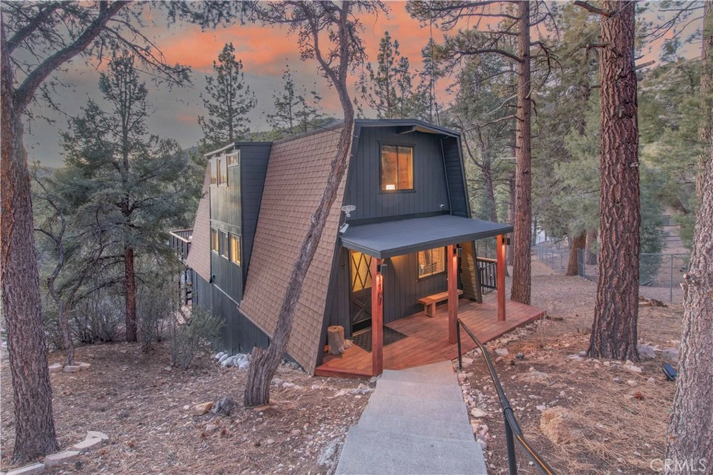 Tucked away among the pines, this beautifully renovated mountain escape offers the perfect blend of style, comfort, and versatility. Ideal as a vacation home, income-producing rental, or year-round residence, the property welcomes you with a charming path leading to the front door. Inside, the remodeled kitchen shines with newer premium appliances and flows seamlessly into the inviting living area, anchored by a striking natural stone fireplace. A wall of French doors frames sweeping sunset views and opens to an expansive, refinished deck—an ideal setting for summer parties and al fresco dining. Upstairs features two refreshed bedrooms and a beautiful shared bath, while the lower level offers a spacious bonus/game room or extra bedroom with its own spa-like bathroom, plus a separate laundry area. Sliding doors here lead to a private second deck surrounded by trees. Fully furnished and set on an 11,700 sq ft lot, this turn-key retreat is ready to enjoy from day one. Call today to schedule a showing!