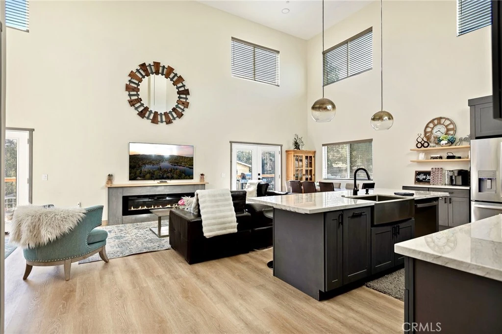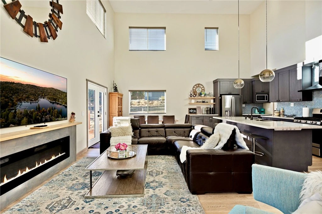 Welcome to your dream mountain retreat designed to comfortably accommodating large groups, making it a perfect gathering place for family and friends after a day of enjoying the lake, slopes, or trails. Nestled in the picturesque landscape of Big Bear, this stunning newer construction (2023) custom home offers tranquility and breathtaking mountain views, with spectacular sunsets painting the sky each evening. Featuring 5 bedrooms which includes an enclosed alcove/loft, at approximately 2379 Sqft with 3.5 baths this home comfortably accommodates large groups and vacation guests, making it an excellent second home or short-term rental investment opportunity. Step inside to discover a spacious and inviting interior filled with natural light and cozy warmth. The open floor plan seamlessly connects the living, dining, and kitchen areas, creating the perfect space for both relaxation and entertaining. Enjoy multiple outdoor living spaces including a front deck, expansive back deck, and upstairs balcony, ideal for taking in the peaceful mountain setting. Additional highlights include a bonus/game room, custom countertops, and furniture included for a turnkey experience, tankless water heater, fire sprinklers and fire-resistant siding for added safety, and an expanded driveway accommodating up to four cars plus a one-car garage. Unwind after a day of adventure in the jacuzzi/spa, perfect after skiing, hiking, or enjoying the lake. With flexible living and multiple sleeping areas, the home is ideal for large family gatherings, shared ownership, or a high-capacity vacation rental that can accommodate 12+ guests. Located in Big Bear City, just minutes from Big Bear Lake, ski resorts, hiking trails, and the Village, this home offers easy access to year-round recreation, from snow trips and lake days to hiking weekends and cozy evenings by the fire. Bonus Opportunity. The adjacent (similar size) lot is also available for purchase for an additional $50,000, offering potential for added privacy, expanded outdoor space, building a second home, or long-term investment. Whether you're looking for a vacation home, mountain retreat, or investment property, this home offers the perfect combination of space, comfort, and flexibility to create unforgettable mountain experiences.