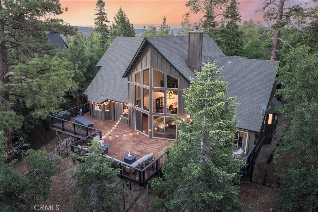 Nestled in the upscale, highly sought-after neighborhood of High Timber Ranch, this custom log-style home offers a modern twist on mountain living. With its minimalistic design and meticulous attention to detail, elegance radiates throughout this exclusive retreat. As you step inside, be prepared for your jaw to drop at the sight of the massive wall of windows that frame breathtaking views. The expansive 1,400 square foot deck is perfect for entertaining or simply relaxing with friends and family, giving you the sensation of being in the tree tops with ultimate privacy and ambiance. The stone fireplace is a towering masterpiece, extending to the ceiling and creating a stunning focal point. The home boasts all-new interior paint complemented by wood panels, while the kitchen, bathrooms, and bar area feature new quartz countertops. The custom chef’s kitchen is both immaculate and sophisticated, equipped with stainless steel appliances and ready for you to create delightful meals. The primary bedroom is a sanctuary with its own fireplace and a beautiful quartz-adorned bathroom featuring a spacious tub. Upstairs, the No. 7 bar offers a perfect space to entertain guests while taking in the panoramic views through endless walls of windows. The bedrooms, with their tall ceilings, enhance the luxurious feel of the home. Outside, the backyard includes a dog run, ideal for your furry friends. This home truly is a masterpiece that must be seen to be believed.