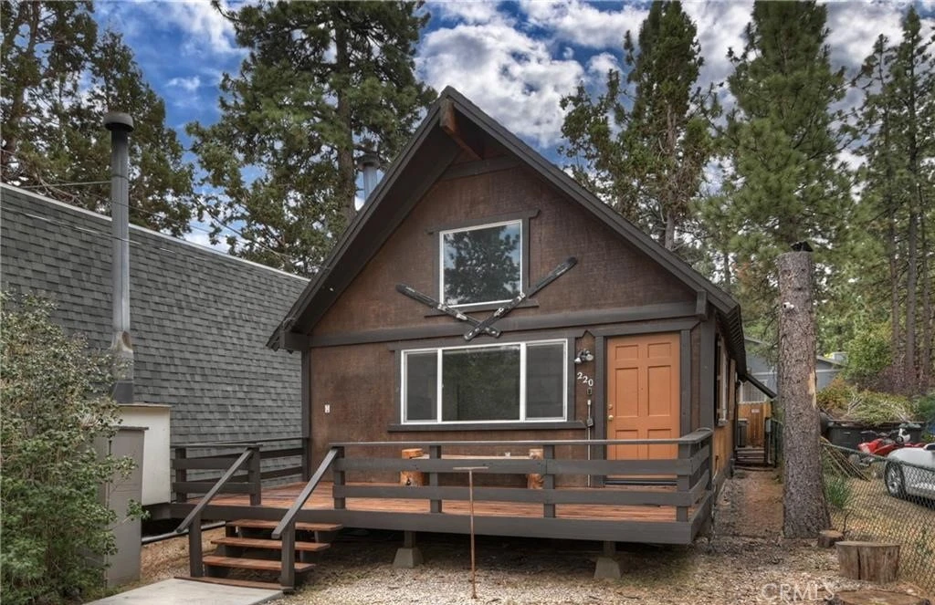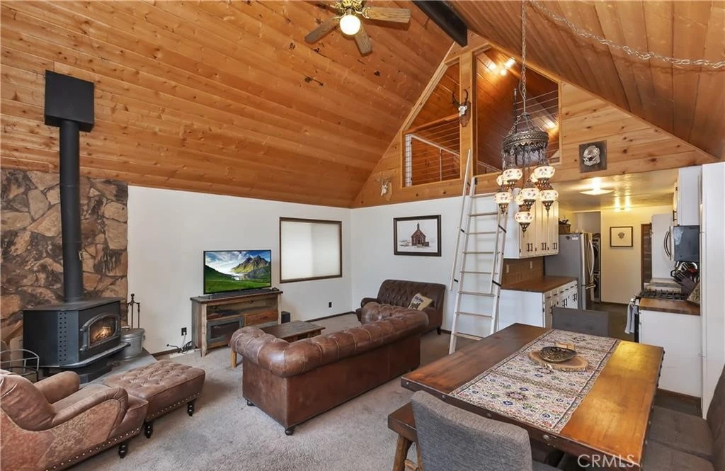 Charming Big Bear City mountain cabin available for long-term lease, either 6 months or 1 year. This 2-bedroom, 1-bath home features vaulted wood ceilings, an open living area with a floor-to-ceiling rock fireplace, and an efficient freestanding wood stove. There’s a spacious loft that now includes three beds, offering flexible sleeping or bonus space, and a new spa to relax after those long days on the slopes. The home has been updated with brand-new carpeting, along with dual-pane windows, natural gas wall heating, and a well-appointed kitchen featuring butcher-block style counters, stainless steel appliances, and a gas range. The bathroom includes custom tile work and a clear glass shower enclosure. Set on a level, partially fenced lot with deck space, concrete driveway, and room for multiple vehicles. Washer and dryer included—convenient Big Bear City location close to shopping, dining, and outdoor recreation.