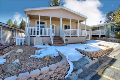 PRICE REDUCTION ON THIS RARE HORSE PROPERTY!! Located in the unincorporated area of Big Bear City. The home is a Manufactured home on permanent foundation and has the 433 permit which allows it to QUALIFY for any loan. EVERY BUILDING ON THIS PROPERTY, TO INCLUDE THE FENCING HAS BEEN PERMITTED THROUGH THE SAN BERNARDINO COUNTY JURISDICTION, also there is a fire hydrant on the property. Property also includes detached Industrial building with 2 roll up doors that are 11' and from ground to gable is 16' that can hold 4 cars and a workshop for the project enthusiasts that is 10x10 with storage and fully wired for 220. The home has a open living room with vaulted ceiling and wood burning sealed stove to keep you warm on those snowy winter nights , Real wood flooring, dining area, kitchen has plenty of storage & counter space. The Master bedroom is oversized with a dual sink bathroom and a garden tub with separate shower. Guest bedroom has a large 3 door closet. Laundry room inside with ample space. The inside of the home also has 220 to run the air conditioning that is 4 ton. Nestled in the wooded property is a beautiful barn that houses 2 horse stalls, and can easily house a 3rd horse with attached tack room and and 2 runouts that can be easily converted to 4 runouts. The barn has electricity and lighting inside & out and is plumbed with water and has a concealed warmer in bottom of water tank you can plug in to keep the water in the bucket from freezing in the winter and summer you can turn off . Round Pen is centrally located between the barn and home and is 40' round also there is a separate gate that you can back a trailer in to, to off load or to load your horses directly to the barn . This property is on city water, city gas and off asphalted road. This beautiful property is fully fenced in off paved road with a fire hydrant on the property. The Property is fully permitted. This is truly a must see on your list , a lot of planning and design to make this a tranquil property.