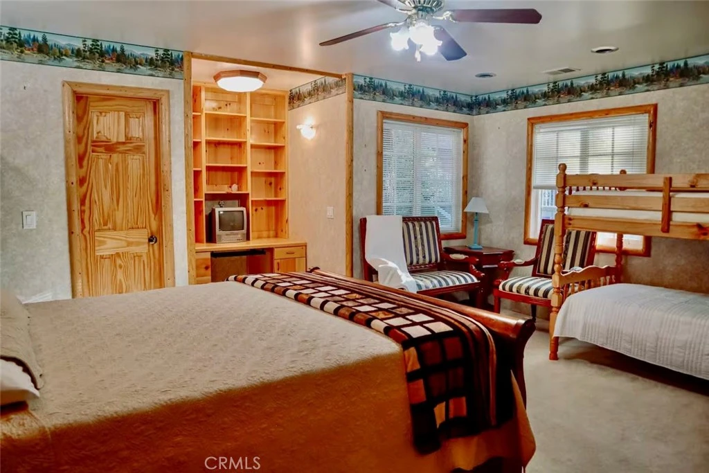 Welcome to your Big Bear mountain escape, where space, character, and versatility come together in this 4-bedroom, 3-bathroom cabin-style home located in a desirable Big Bear City neighborhood. Spanning approximately 1,473 square feet, this home offers a rare and highly sought-after four-bedroom layout, making it ideal for full-time living, a vacation retreat, or a high-demand rental opportunity. Step inside and immediately feel the warmth of the mountain lifestyle with open-beam ceilings, rich wood accents, and a classic brick fireplace—the perfect setting for cozy evenings after a day on the slopes or exploring the lake. The layout is both functional and flexible, featuring two primary suites, ideal for hosting guests, multi-generational living, or maximizing rental potential. Upstairs, the primary suite opens to a private deck overlooking the backyard, offering a peaceful space to enjoy fresh mountain air, morning coffee, or sunset views. The kitchen provides ample cabinetry and workspace, seamlessly connecting to the living and dining areas for easy entertaining. Additional features include dual-pane windows, a dedicated laundry area, and generous storage throughout. Situated on a 5,000 sq ft lot, the property offers outdoor space ready for entertaining, relaxing, or future enhancements. Located just minutes from Big Bear Lake, ski resorts, hiking trails, and local dining and shopping, this home delivers the perfect balance of privacy, accessibility, and year-round recreation. With its versatile layout and prime mountain location, this property presents a compelling opportunity for both homeowners and investors alike (buyer to verify short-term rental regulations). Don’t miss the opportunity to own a spacious Big Bear property with strong upside potential and lifestyle appeal.
