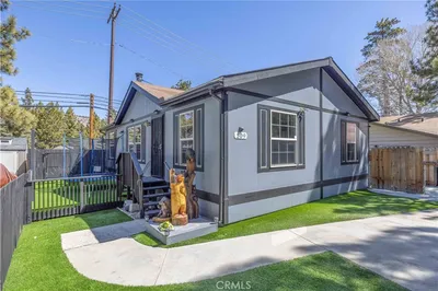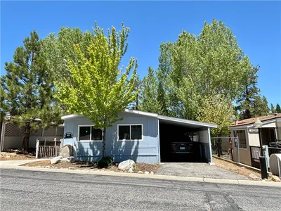 Welcome home to Whispering Pines Estates, located in gorgeous Big Bear City! In this community you OWN the land and the HOA has amenities galore! This manufactured home is nestled amongst the pine trees and offers a bit of mountain paradise, with a large deck off the front of the home with views to the North and where you can take in that crisp mountain air and SoCal sunshine. Bonus is the expansive carport with wrought iron gates and concrete driveway. The interior features: Almost 1200 sf. of living space; 3 bedrooms and 2 bathrooms; Living room that is open to the kitchen and dining area; Indoor laundry room (washer/dryer included!); The primary bedroom is spacious with a walk-in closet, plus the primary bathroom with extra storage and walk-in shower. The kitchen has wood cabinetry, granite counter tops, recessed lighting, and window facing out to the front deck. Bonus features include: Dual pane windows, security screen doors, central HVAC, upgraded roof, and immaculate condition! The community is fantastic as it includes the clubhouse which features: outdoor pool, indoor spa, saunas, restrooms, billiard room, kitchen, dining hall space, sitting area with fireplace, exercise room, laundry room, playground, & RV/boat storage!