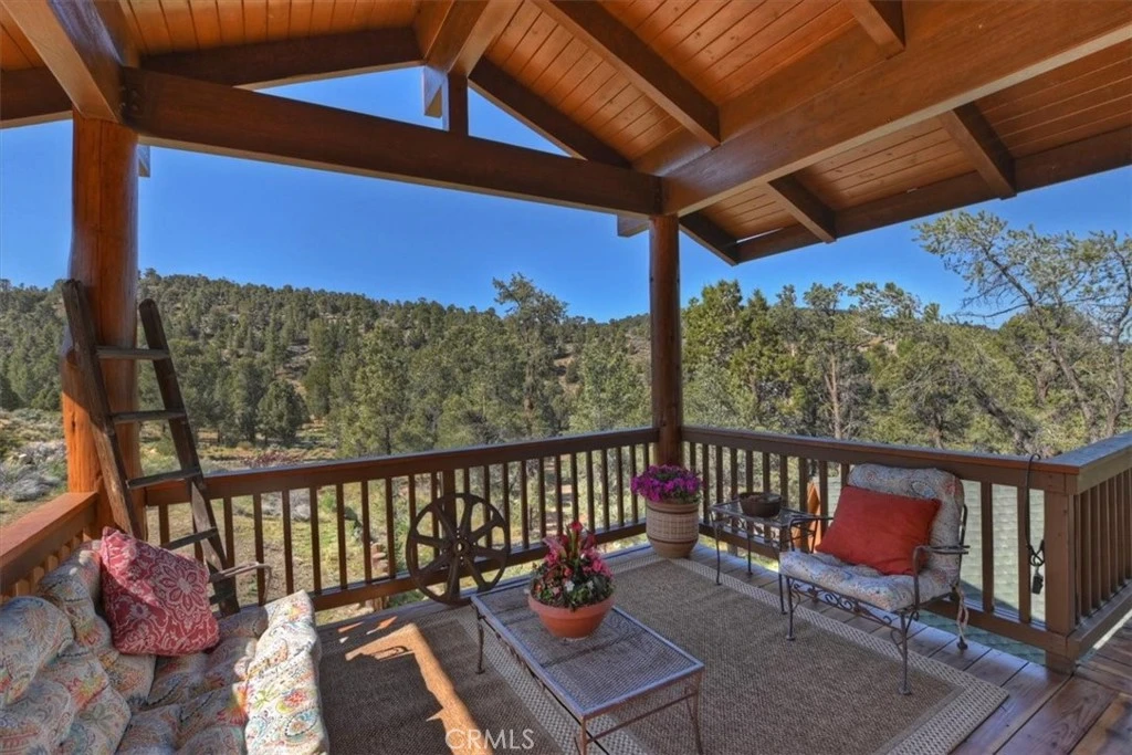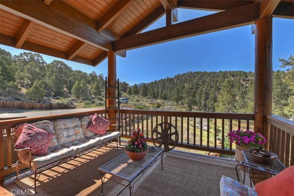 HOME, HOME ON THE RANGE... Welcome to your 10-acre mini ranch. You’ll love the views and the peaceful atmosphere here. This custom ranch-style home offers a tranquil setting, with five bedrooms (or four plus a loft) and four bathrooms. The home has its own private well and is about 3,300 square feet. Features include a spacious open floor plan, a floor-to-ceiling rock fireplace in the living room, and another in the main bedroom. There is a full kitchen with stainless steel appliances, including a range, dishwasher, microwave, refrigerator, granite countertops, a pantry, a breakfast bar, a spacious dining area, central forced-air heating, hickory wood floors, and a full laundry room with a deep sink. The home also features vaulted ceilings, a three-car attached garage, large redwood decks, and a three-stall barn, each with its own corral, an attached tack room with a half bath, a hay storage shed, a riding arena, and covered RV parking. All of this is set on 10 wooded acres in the middle of a pinion forest, with views of the surrounding hills and Baldwin Valley. The exterior has just been freshly painted and stained. This property is ideal for equestrian use but offers many other uses as well. Furnishingsare negotiable.