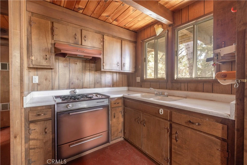 Nestled just steps away from Bear Mountain Ski Resort, this charming 2-bedroom, 1-bath A-frame cabin offers the ultimate mountain getaway. Featuring vaulted tongue-and-groove ceilings and an open-concept kitchen, living, and dining area, this cozy retreat is brimming with potential. Major improvements have already been completed, including foundation repairs, a new heater, and a fully replaced water main from the meter to the house with a new stop-and-waste valve—providing a solid head start for the next owner. The expansive lot offers ample room to expand or enhance the property, making it an excellent opportunity for rental income or personal use. With a few additional upgrades, this mountain gem could truly shine in one of Big Bear’s most sought-after locations.
