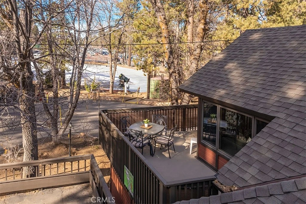 AMAZING LOCATION, just steps to the slopes at Snow Summit, this exceptional corner unit offers a fantastic gateway to year-round adventure, with skiing & snowboarding in the winter & mountain biking in summer. From the time you arrive, Mountain Magic begins. Soaring ceilings & a wall of windows overlooking the resort flood the space with natural light & 3 skylights further enhance the spacious feeling. The open Great Rm delivers a striking fireplace, currently electric & plumbed for gas or wood-burning options, providing a cozy spot on snowy winters nights. The updated kitchen & spacious dining area blend modern style & rustic charm, featuring an expansive wood dining bar, black range & dishwasher, pretty tile counters & pebble-stone backsplash. This space inspires memorable meals with friends or family! The wrap-around deck is one of the largest in the complex with gas BBQ & privacy screening- enjoy morning coffee & dining under the stars. There are 3 bedrooms, including the primary suite-a peaceful retreat with 2 spacious closets. The ensuite bathroom is updated with a stone-topped furniture-style vanity & the hall bath offers a shower/tub combination. The 2 guest rooms have mirrored-door closets & large windows-one has views of the lower ski slope. This location offers convenience & FUN—head out for 1st tracks in the morning & easily return for breakfast or a relaxing lunch, refreshed to hit the slopes again. With level entry & 2 parking passes, every adventure begins with ease. Whether you’re relaxing by the fireplace, entertaining on the deck or embracing the thrill of Big Bear’s year-round activities, your “Escape” begins here, in a home that delivers so much: an exceptional corner unit location overlooking Snow Summit & upgrades including a new furnace & water heater in 2023 offer a great balance of comfort & function. Originally owned by the developer, unique features set it apart including an interior laundry/storage rm (approx. 8' x 7.5') with full-size washer and dryer & added storage. Beneath the deck is a surprisingly large 7' x 17' storage unit, that can be used for owner tools & toys or rented to the HOA, which currently leases it for $260 per quarter, offering a valuable income stream. For those seeking an investment opportunity, the Escape HOA offers on-site short-term rental management, making it EZ to generate income. Beyond the slopes, Big Bear’s charming village, restaurants & marinas are minutes away! Offered furnished per inventory.