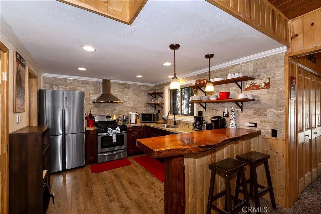 Beamed Ceilings, Breakfast Bar, Eat In Kitchen, Wood Product Walls, Main Level Primary