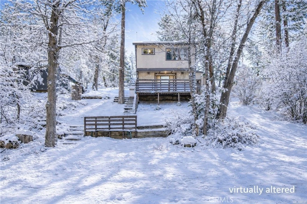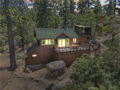 Cozy Big Bear home on a Large Lot! Welcome to this charming 2 bed, 1 bath mountain retreat offering 789 sq ft of living space on a spacious 12,051 sq ft lot. Featuring vaulted ceilings, exposed beams, a cozy fireplace, and an updated kitchen with stainless appliances, this home is perfect as a full-time residence, weekend getaway, or short-term rental. Enjoy the peaceful setting from the covered deck surrounded by pine trees, with plenty of room for outdoor entertaining, parking, and future expansion. Conveniently located near Big Bear Lake, ski resorts, hiking trails, and the Village. A great opportunity to own in Big Bear! Some images in this listing have been digitally altered.
