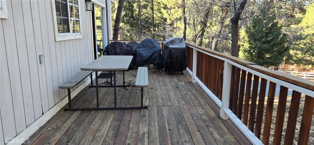 Beautiful Moonridge home nestled on a quiet street with no home directly across the street. Very quiet and tranquil. This home is located close to Bear Mountain Ski Resort, Golf Course, and the Big Bear Zoo. Only about a 10 minute drive to The Village for fantastic shops and restaurants. Property consists of brand new carpet throughout, new slider door, wood beam ceilings, cozy fireplace, separate dining room, and spacious kitchen with center island and stainless appliances. All furniture and appliances are included in the sale including the new large living room hanging TV and TV's located in each of the bedrooms. The lot is 7,560 with a side refurbished deck, rear patio, and front wrap around parking.