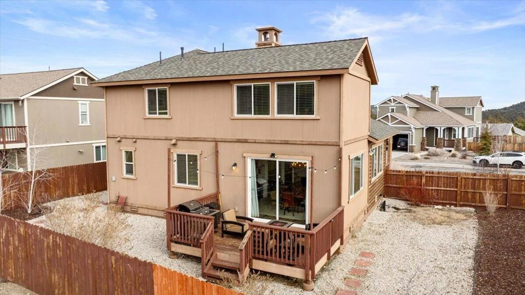 Welcome to Lazy Bear Lodge -- a beautifully designed modern mountain retreat built in 2016 and located in one of Big Bear's most desirable areas. Whether you're searching for a turnkey short-term rental, second home, or full-time residence, this property checks all the boxes. This fully furnished cabin offers 3 spacious bedrooms, 3 full bathrooms, and approximately 1,898 sq. ft. of open living space. The open-concept floor plan features soaring ceilings, abundant natural light, and a stunning stone fireplace that creates a true mountain ambiance. The home blends modern comfort with rustic charm throughout. The primary suite has a complete en-suite bathroom. Additional highlights includean open-style cabin layout with a 3 car attached garage used currently as a game room, perfect for entertaining family and guests. Situated on a fully fenced 10,350 sq. ft. lot, the backyard is designed for year-round enjoyment with a firepit, patio deck, and BBQ area--ideal for gatherings, relaxation, and RV Parking. Near Big Bear Lake, ski resorts, hiking and biking trails (Maple Hill Trails right across the street!), shopping, and dining, this home offers excellent potential for personal use and/or rental income.