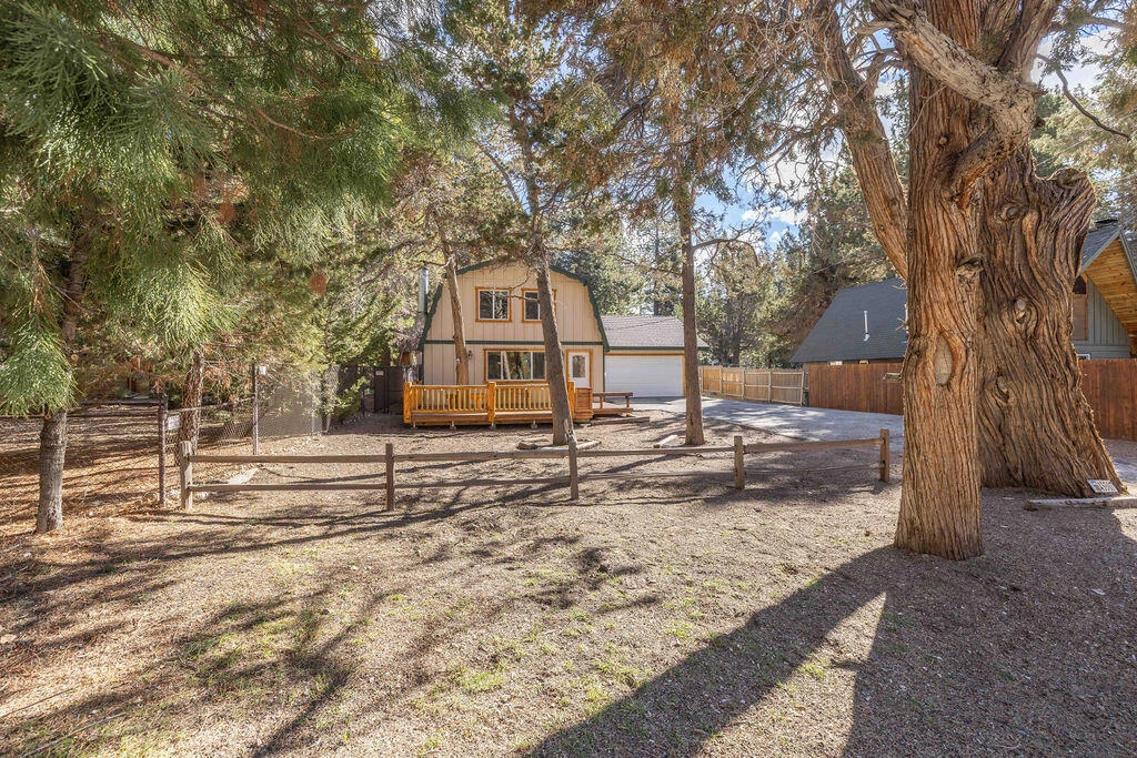 Located on a level 7,200 sq ft lot with a fenced backyard in the desirable Moonridge area of Big Bear. This classic gambrel-style home offers comfort, convenience, and a sense of seclusion. Well maintained showing pride of ownership. The fresh interior paint and new carpet complement the light-filled interior with dual-pane windows throughout. The spacious living room features a cozy wood-burning fireplace, perfect for mountain evenings. Enjoy the large front deck, plentiful parking, and an attached 2-car garage. The home also includes an indoor laundry area for added convenience. Backing to Sand Canyon, the property provides an illusion of privacy while being just a short distance to Bear Mountain, Snow Summit, Bear Mountain Golf Course, the Big Bear Zoo, the Moonridge Corridor, and everything Big Bear has to offer. This home is on public water, public sewer, natural gas, and has access to high-speed internet. This would make a great full time, second home or vacation rental.