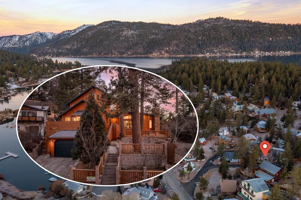 Your mountain lake dream home awaits. Situated in the highly-coveted area of Boulder Bay on the west end of Big Bear Lake, this classic log-style cabin has been tastefully updated and remodeled with modern finishes and amenities, while retaining its warm vintage charm. Off the beaten path and perched on a hillside offering lake views through the pines, and just a block from the bay shore and park. There is room for a crowd with 5 bedrooms, a family room/game room with a pool table and beautiful and efficient Xtrordinaire fireplace, plus a bonus room on the lower level that could be a den, office, or additional sleeping area. Comfortable master suite has it's own fireplace (also Xtr.), and a private balcony with spa and views. Master bath has a spacious walk-in shower with new glass door and a luxurious spa tub. Remodeled gourmet kitchen boasts granite, stainless, an island, and pantry. Multi-tiered landscape features plenty of inviting outdoor sitting areas; enjoy outdoor living and BBQs out on the back patio and private fenced yard. Recent upgrades include new tankless water heaters and all new ceiling fans in every room. Easy all-season access on the freshly-paved circular street and concrete driveways with plenty of parking plus an attached garage. Beautifully furnished and turnkey, ready to be your mountain getaway and/or income-producing vacation rental. A truly special property that checks all the boxes.