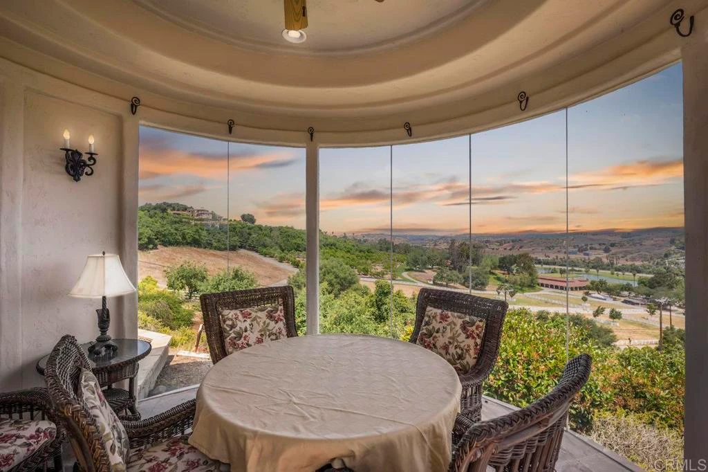 Gorgeous single-story 4.53-acre estate with breathtaking views! Upgrades shine throughout this private 4,350 sqft home with dramatic ceilings and open floor plan in the highly sought-after neighborhood of Hialeah Rancho Estates. Retreat to your outdoor dining area and glass viewing gazebo with a cozy fireplace, surrounded by majestic landscapes and the peaceful countryside. Entertain friends and family and enjoy a glass of wine while admiring the sweeping panoramic views. Picture-perfect sunsets from nearly every room in this elegant home! Watch horses run and play in the distance while you sip your morning coffee amidst your grove of 100 mature avocado trees, and breathe in the cool ocean breeze from the San Luis Rey River Valley. One wing of this estate includes two guest bedrooms, each with a private entrance, kitchenette, and upgraded en suite bath—perfect for guests or multigenerational living! Your dream horse property awaits with a detached 1,000 sqft barn featuring three horse stalls and a tack room, easily convertible to a large garage, workshop, or additional guest home. Owned solar with 40 panels! A pebble stone-gated entry leads to your spacious home featuring expansive windows flooded with natural light, gorgeous travertine, marble, Brazilian Cherry wood, tall baseboards, and custom wood beams. The original owners spared no expense building this estate with five fireplaces, custom built-ins, and high-end finishes, this home is stunning inside and out! The chef’s kitchen is a masterpiece: open and bright, with a farmhouse sink overlooking tranquil views for days, granite countertops with a porcelain artisan backsplash, built-in Sub-Zero refrigerator, Viking and Bosch stainless steel appliances, and a butler’s pantry. The breakfast nook and dining room make you feel like royalty! Gorgeous hardware, luxury Venetian chandeliers, custom window coverings, plantation shutters. As you walk through the flowing floor plan, you’ll find beautiful bathrooms, spacious secondary bedrooms and office, and custom built-ins. Even the laundry room is exquisite with granite countertops, ample storage for crafts or hobbies, and potential to be converted into an additional bedroom. The primary retreat features a marble Jacuzzi spa, dual marble vanity, fireplace, expansive walk-in closet, and a sitting area that opens to the spacious backyard. Outside, you’ll find courtyards and sitting areas, a built-in BBQ, water features, and manicured tropical landscaping throughout the residence. There is ample room for whatever you can dream of. An infinity pool overlooking mountain views as far as the eye can see is waiting to be built! The usable land has room to imagine a vineyard, garden, pool, or pickleball court. A four-car garage with converted workshop is ready for all your toys. Roses and trees of all varieties including avocado, orange, apple, fig, grapefruit, lemon, lime, and persimmon adorn the well cared for grounds. You’ll love this beautiful move-in-ready home in a wonderful location! One of only 19 custom-designed homes in Hialeah Rancho Estates. This home is situated on a private and serene road with endless views overlooking the prestigious Moody Creek Farms and San Luis Rey Downs Equestrian Centers. Bonsall is known for its calm lifestyle, natural surroundings, and exceptional weather, just 30 minutes to beaches and wineries. The Bonsall marketplace offers five-star restaurants, a cinema, and Daniels grocery store. Enjoy privacy and space while still being close to top-rated schools and shopping! Additional highlights include: three AC zones, tankless water heater, solid Alder wood doors, water filtration system, epoxy garage, screendoors, central vacuum, designer stonework, recessed lighting, arched doorways, decorative iron gate, security cameras, RV drain and electric hookups, wet bar with gold chiseled sink and Viking wine cooler, retractable sun awning, and surround sound.