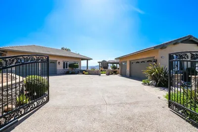 Private Tropical Estate with Mountain Views, Custom Home, Guest House and Workshop on 2.5 Acres in West Bonsall. Welcome to your own secluded paradise nestled in the tranquil foothills of Sleeping Indian. This one-of-a-kind compound blends luxury living, breathtaking scenery, and incredible functionality across a fully usable 2.5-acre estate—a rare gem in sought-after West Bonsall. Framed by gorgeous panoramic views of surrounding mountains and rolling hills, the property is surrounded by nature, offering daily visits from red-tailed hawks, eagles, hummingbirds, and more. Whether enjoying your morning coffee on the patio or relaxing in the spa under the stars, the sounds and sights of nature create a serene, private retreat you’ll never want to leave. This meticulously maintained property features a gorgeous 2-story custom main home, a spacious second dwelling, and an expansive multi-use workshop, totaling 6,376 square feet of living and functional space. Designed with resort-style living and entertaining in mind, the grounds offer lush tropical landscaping, multiple patios, custom water features, firepits, and dozens of fruit trees—all creating an incredibly peaceful setting. Whether you're looking for a multi-generational estate, a vacation-style retreat, or an income-generating property, this home offers unmatched versatility and potential. Main Residence (3,441 Sq Ft) 4 spacious bedrooms and 3 luxurious custom bathrooms. Grand living room with soaring cathedral ceilings. 3 custom stone fireplaces, including one in the primary suite. Stunning master bath with Jacuzzi tub and steamer shower. Solid Mahogany and Cherry wood doors and door frames. New Anderson casement windows and Sierra Pacific sliders. Gourmet kitchen with high-end appliances and open concept layout. Large dining room and cozy family room—perfect for entertaining. Impressive 6-ft wide grand staircase. Ample storage with two large, accessible attics. Split-zone HVAC, central vacuum, and upgraded 4-year-old septic. Oversized garage with drive-through UTV access. Soothing entrance fountain and expansive rear paver patio—ideal for a future pool. Outdoor Resort Living includes a massive entertainment patio with covered outdoor kitchen, premium appliances, dual refrigerators, and seating for up to 16. Covered El Grande Cal Spas Jacuzzi. Resort-style lighting, water features, and fire pits. Stunning mountain views and daily wildlife sightings—from soaring hawks and eagles to playful hummingbirds. Landscaped to perfection with a tropical theme throughout. Fully paid 52-panel solar system powering both homes. Dual gated entrances for added privacy and access. Second Dwelling and Workshop (3,120 Sq Ft Total), Guest House (1,248 Sq Ft) 2 bedrooms, large great room, kitchen, and recent upgrades, New windows, mini-split heating and A/C, separate laundry, Ideal for guests, or income—previously rented for $3,200/month, Workshop (1,872 Sq Ft), Currently equipped with 3 car lifts (up to 15 car capacity) Includes central shop vacuum, compressed air plumbing, and enclosed music/bonus room, Perfect for car enthusiasts, hobbyists, or small business use, Bonus: Unfinished 425 Sq Ft carport offers potential to convert into office, studio, or additional living space. Additional Highlights: Located on a peaceful private gated road in highly desirable West Bonsall. Gently sloping, 100% usable land—ideal for equestrian use, farming, or expansion, High-speed internet in both homes. First time ever on the market, lovingly cared for by the original owner. An outdoor lover's dream—watch hawks soar and hummingbirds dance, right from your backyard.